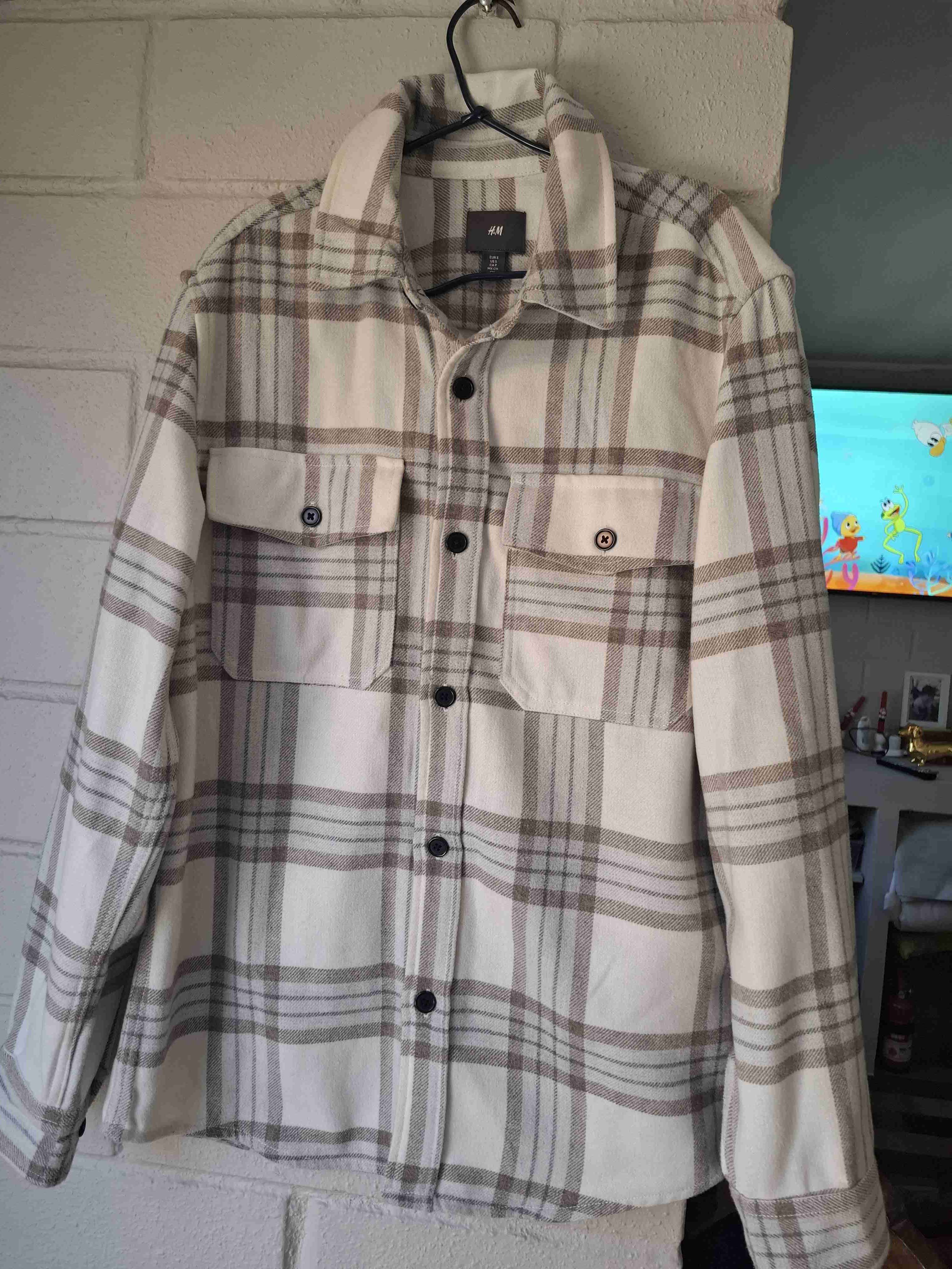 Chaqueta de franela con diseño a cuadros, ideal para el otoño. En buen estado, cómodo y abrigador para uso diario.