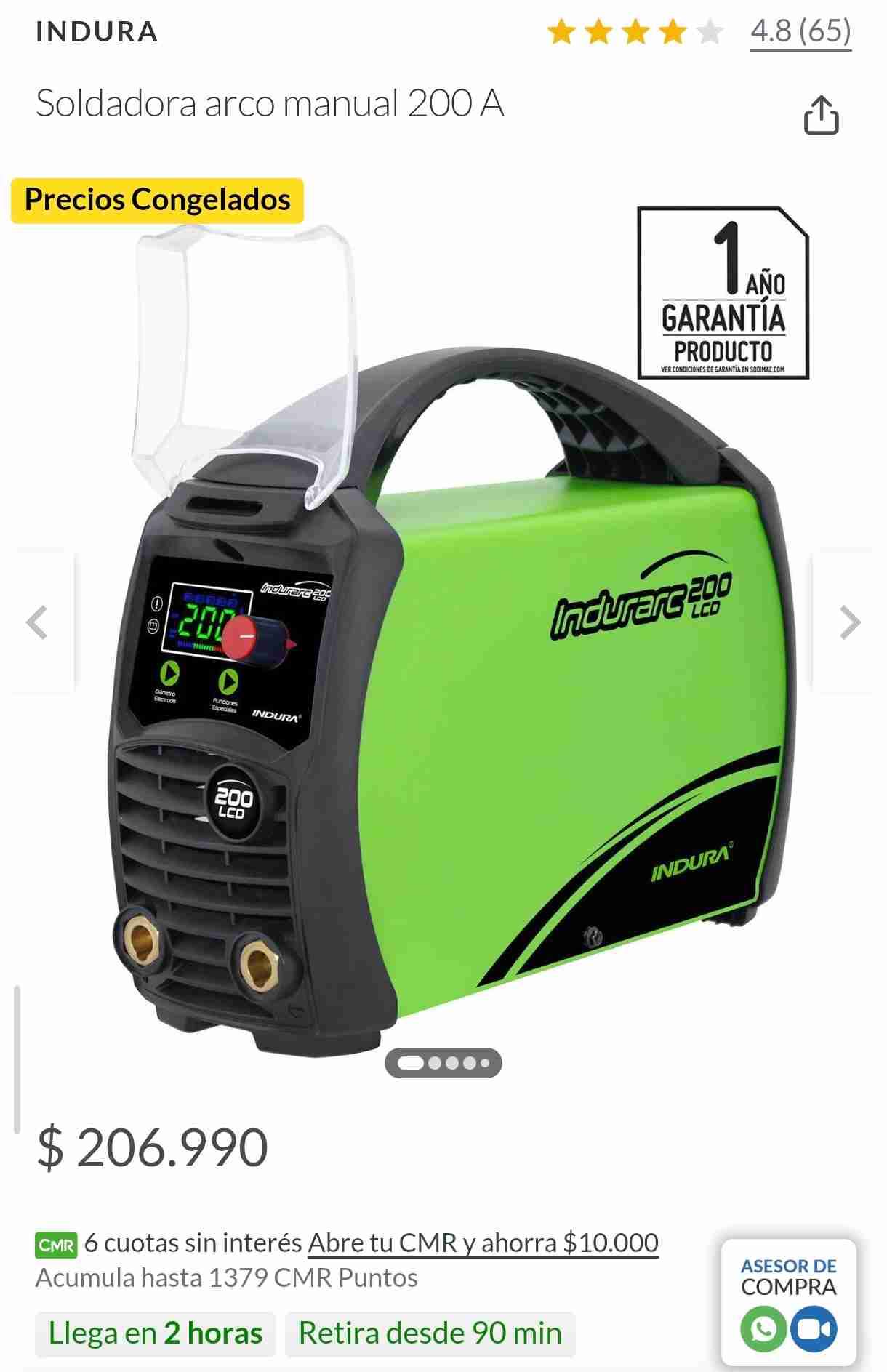 Soldadora de arco manual Indura de 200 amperios, ideal para trabajos de soldadura precisos.buen estado con cable porta de 5 metros.