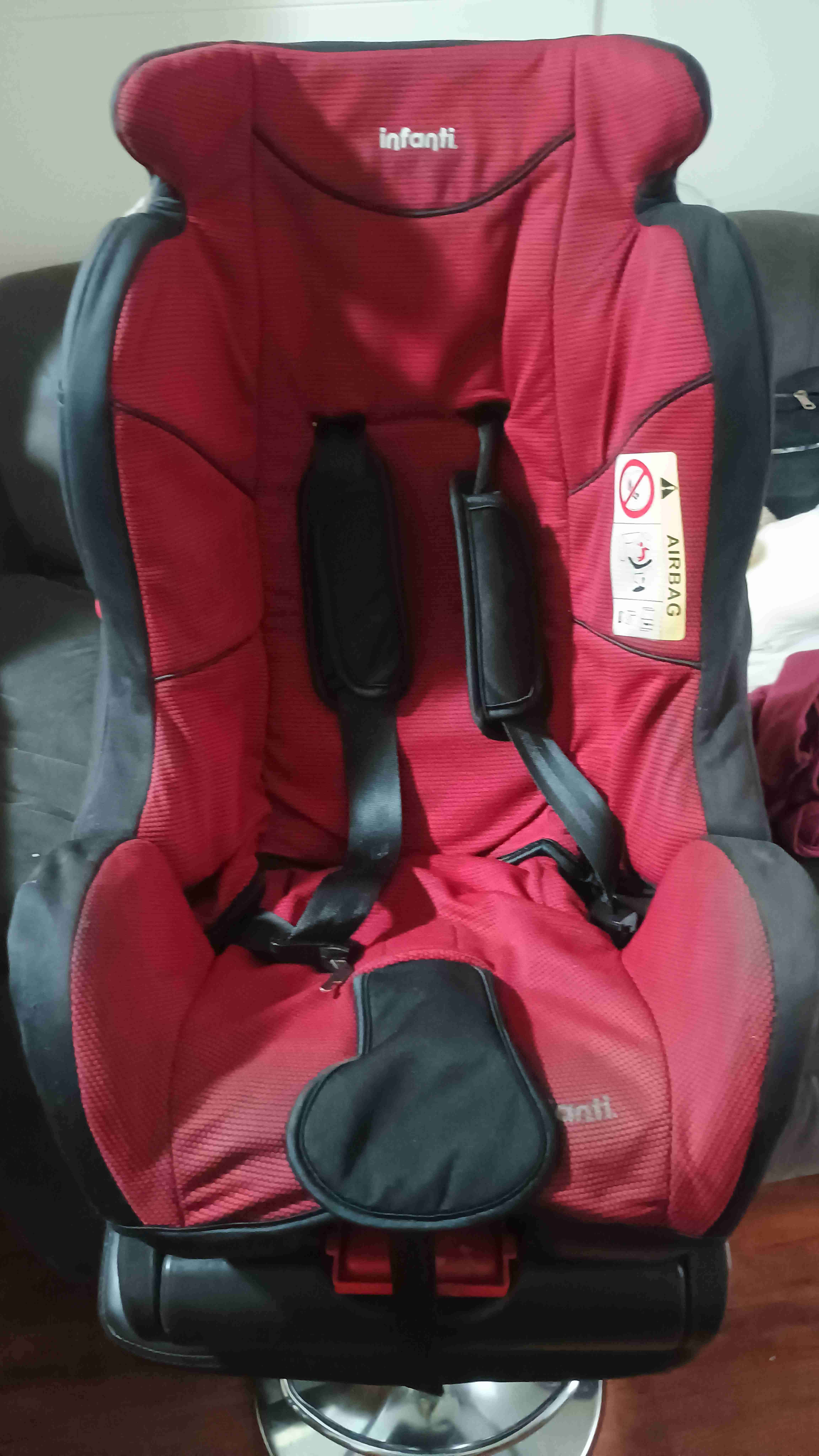 Silla de auto color rojo en buen estado. Ideal para la seguridad de tu bebé durante viajes. Presenta leves signos de uso.