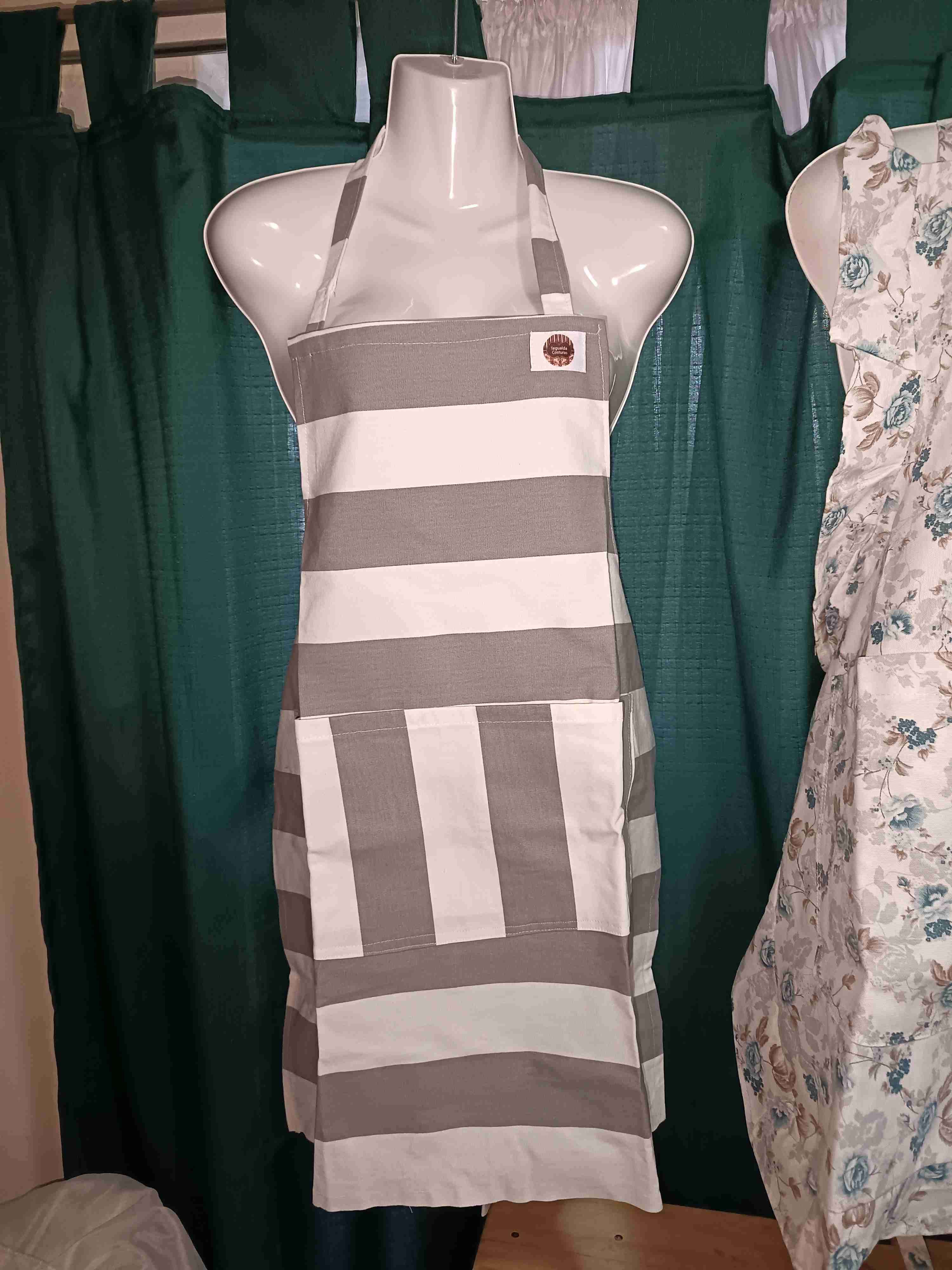 Delantal a rayas gris y blanco en tela lona