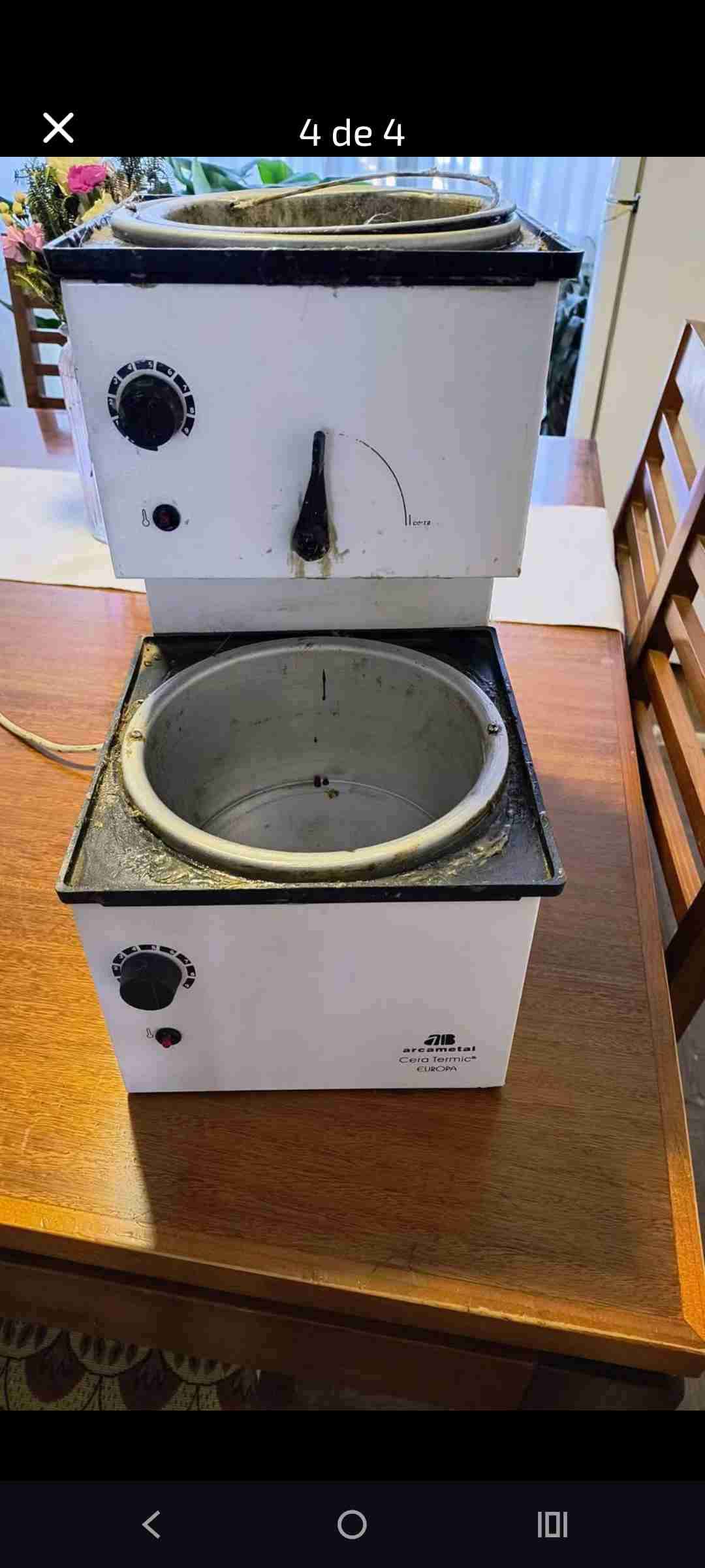 Calentador de cera doble marca Arcametal. Presenta signos de uso pero funciona correctamente. Ideal para salones de belleza o uso personal.