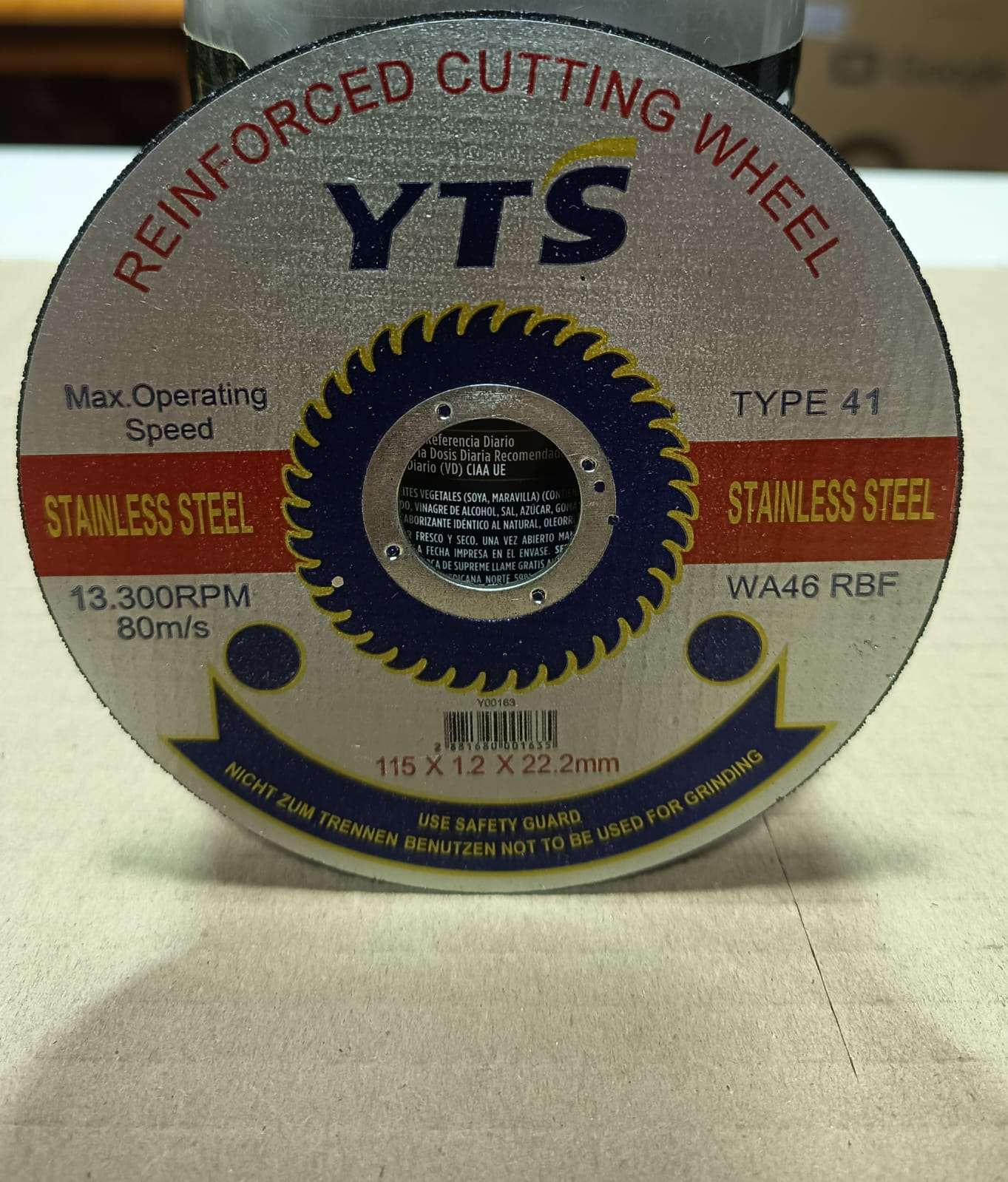 Disco abrasivo de corte extra fino, diseñado para brindar cortes rápidos, precisos y con un mínimo de rebaba. Es la herramienta ideal para trabajos de herrería y construcción que requieren un acabado limpio en diversos tipos de metales. Especificaciones técnicas: Marca: YTS. Medidas: 4 1/2" (115 x 1.2 x 22.2 mm). Uso: Metal, fierro, acero inoxidable y latas. RPM Máximo: 13.300 (80 m/s). Tipo de disco: Abrasivo reforzado (Tipo 41). Cantidad: 1 unidad. Estado: Nuevo.