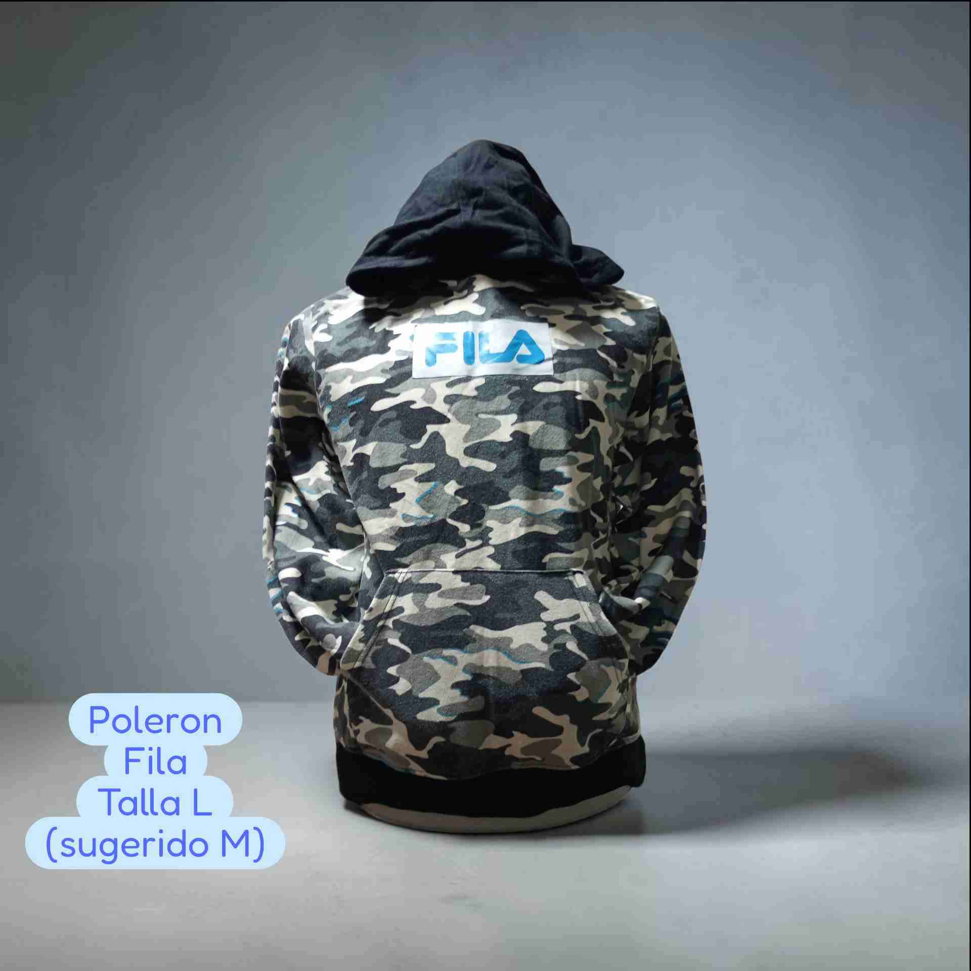 Polerón Fila con diseño camuflado, ideal para días fríos. En buen estado general.