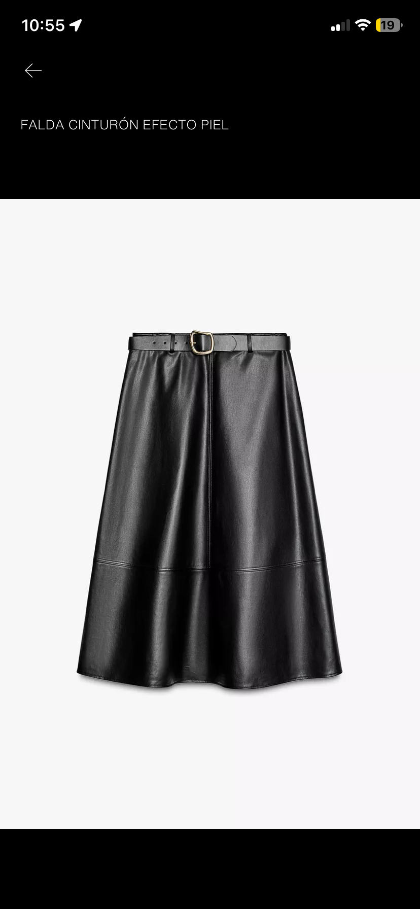 Falda Zara de cinturón negro con efecto de cuero. Talla M, nueva con etiqueta Precio referencia 37.990.