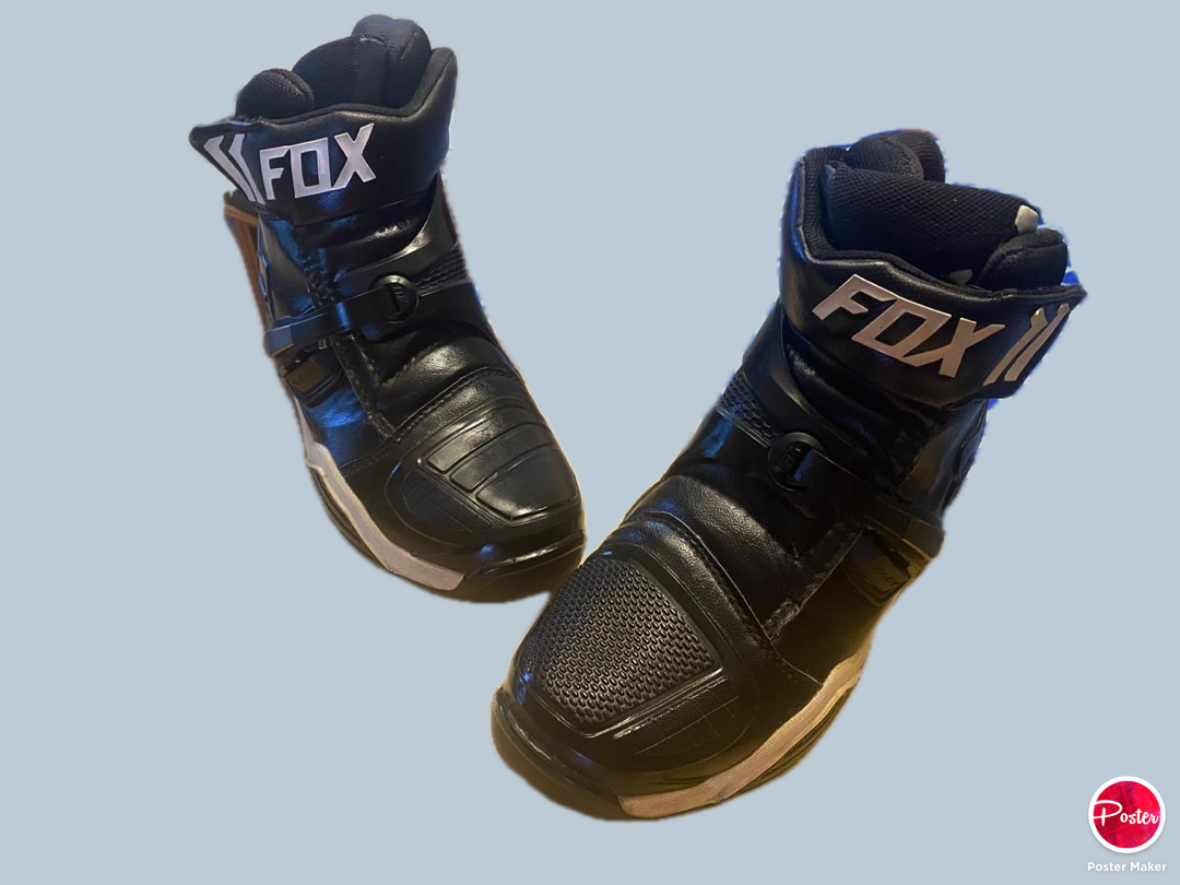Botas deportivas Fox de color negro con cierre ajustable. En buen estado general, ideal para actividades al aire libre.