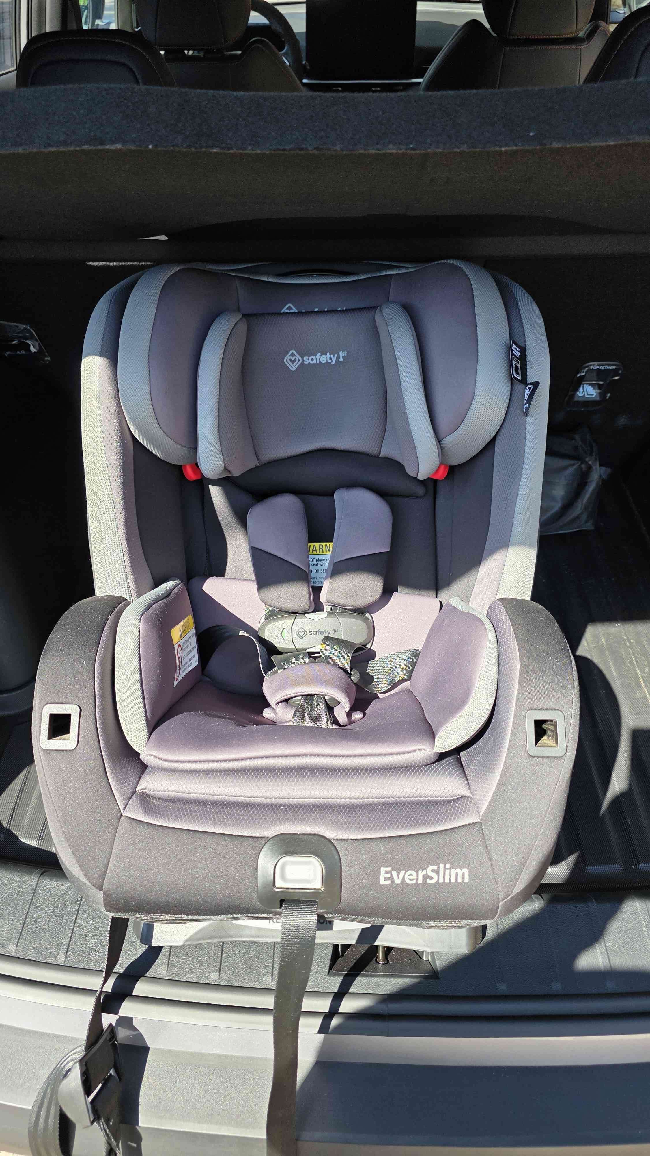 Silla de auto Safety 1st en buen estado, color gris, ideal para seguridad infantil en viajes.