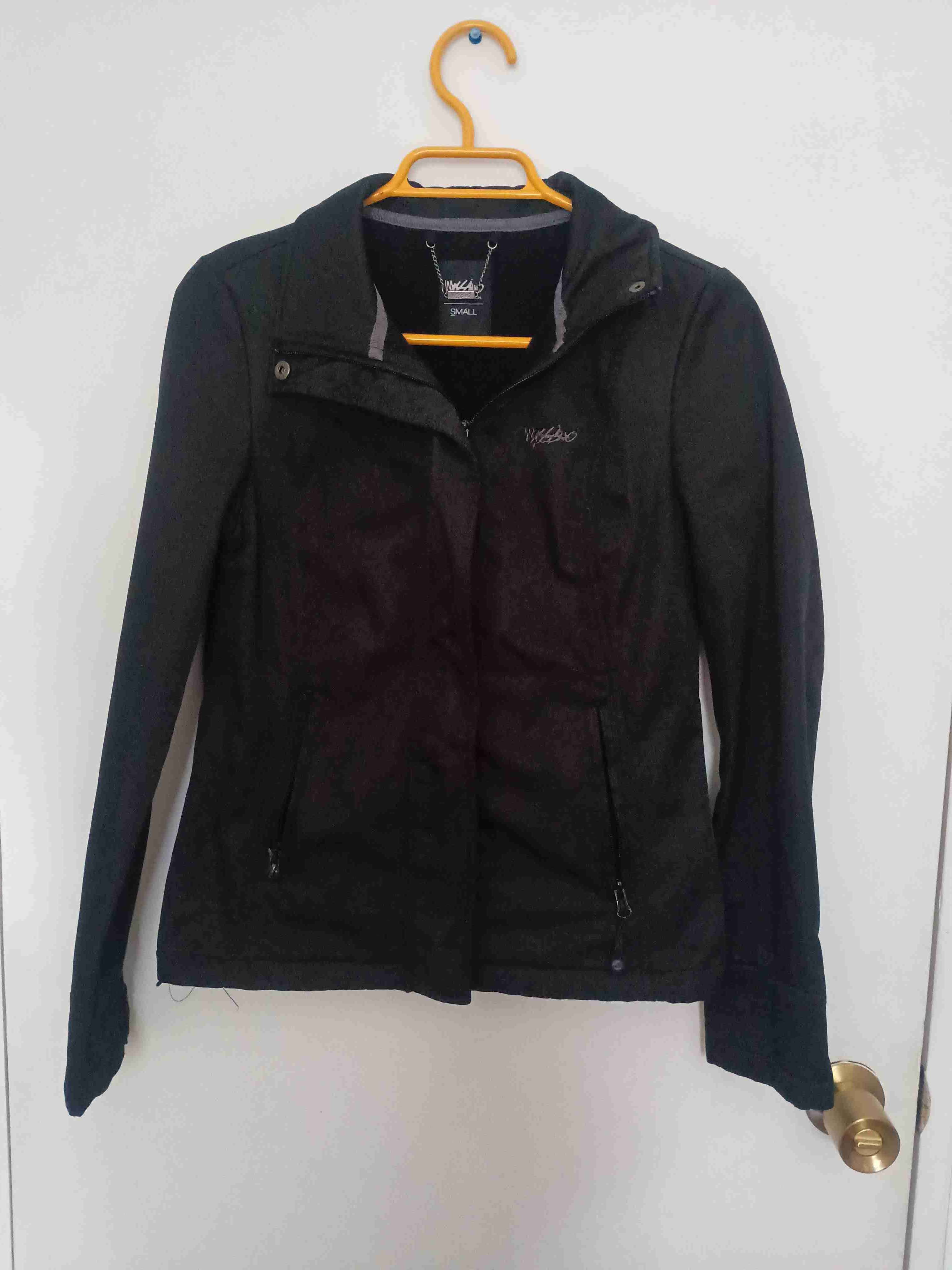 Chaqueta negra con capucha y cierre frontal, ideal para días frescos. En buen estado general.