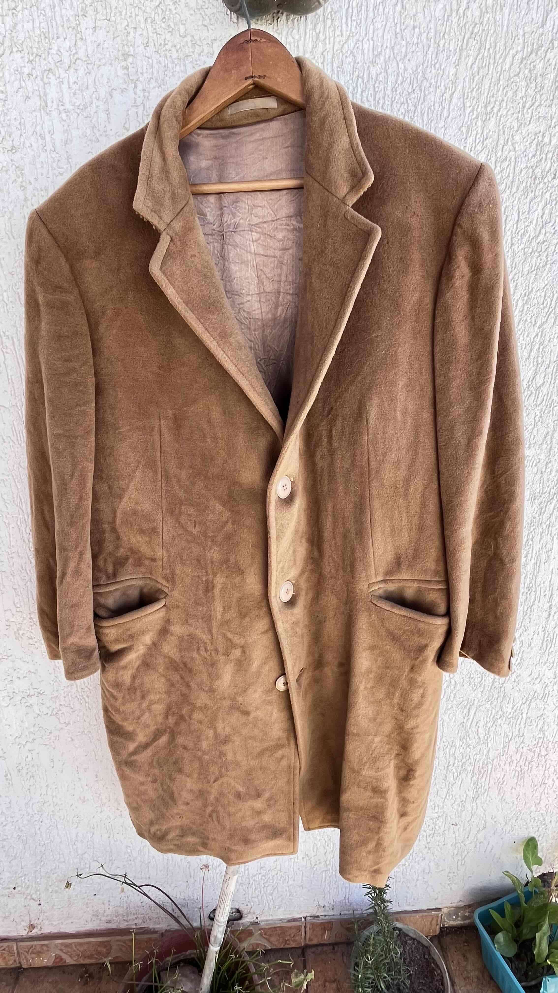 Abrigo de estilo vintage en color beige. Presenta un estilo clásico, ideal para el invierno. Buen estado general.