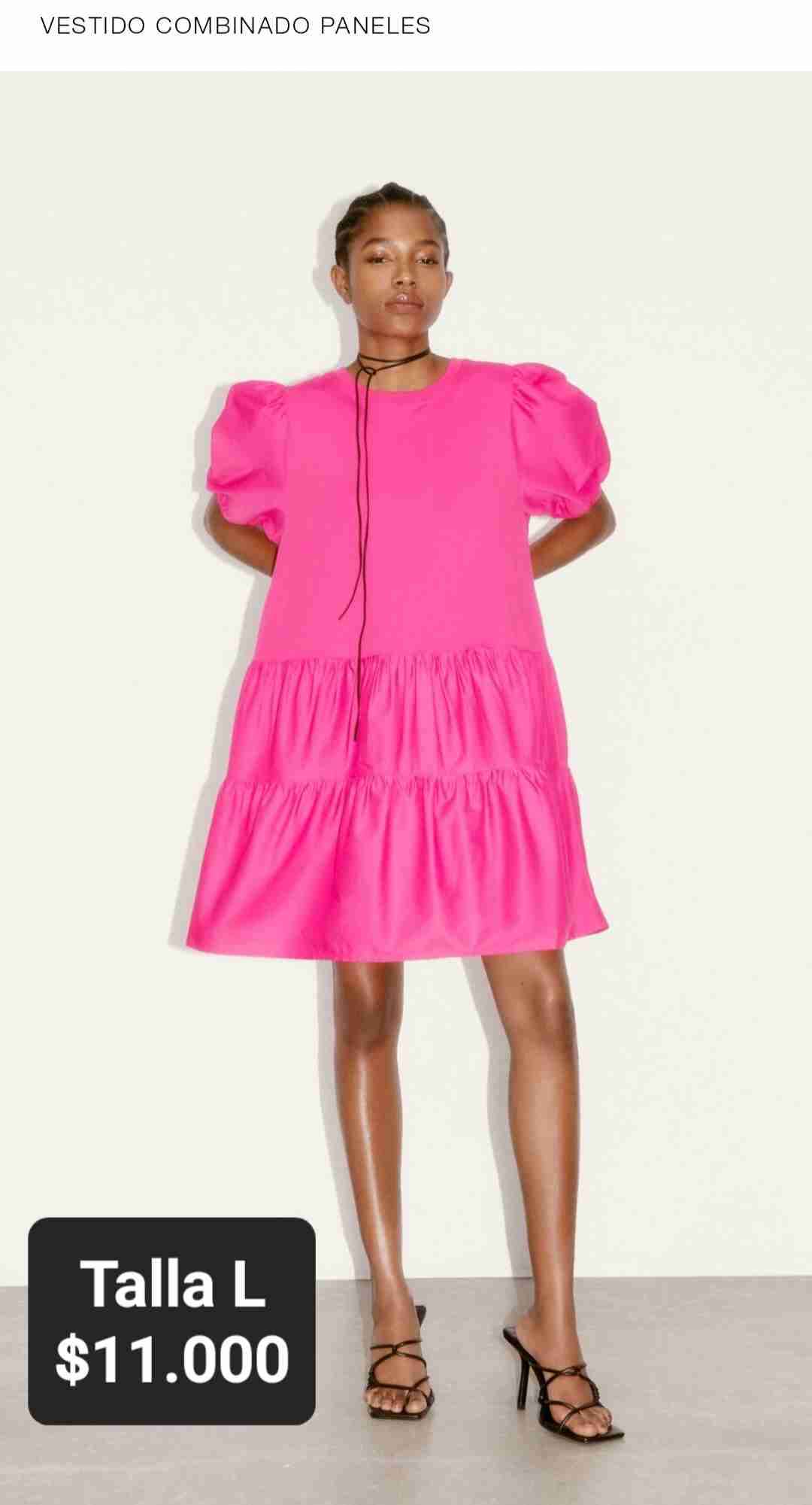 Vestido de color fucsia vibrante con mangas abullonadas. Perfecto para eventos formales o casuales. Solo se usó 1 vez.