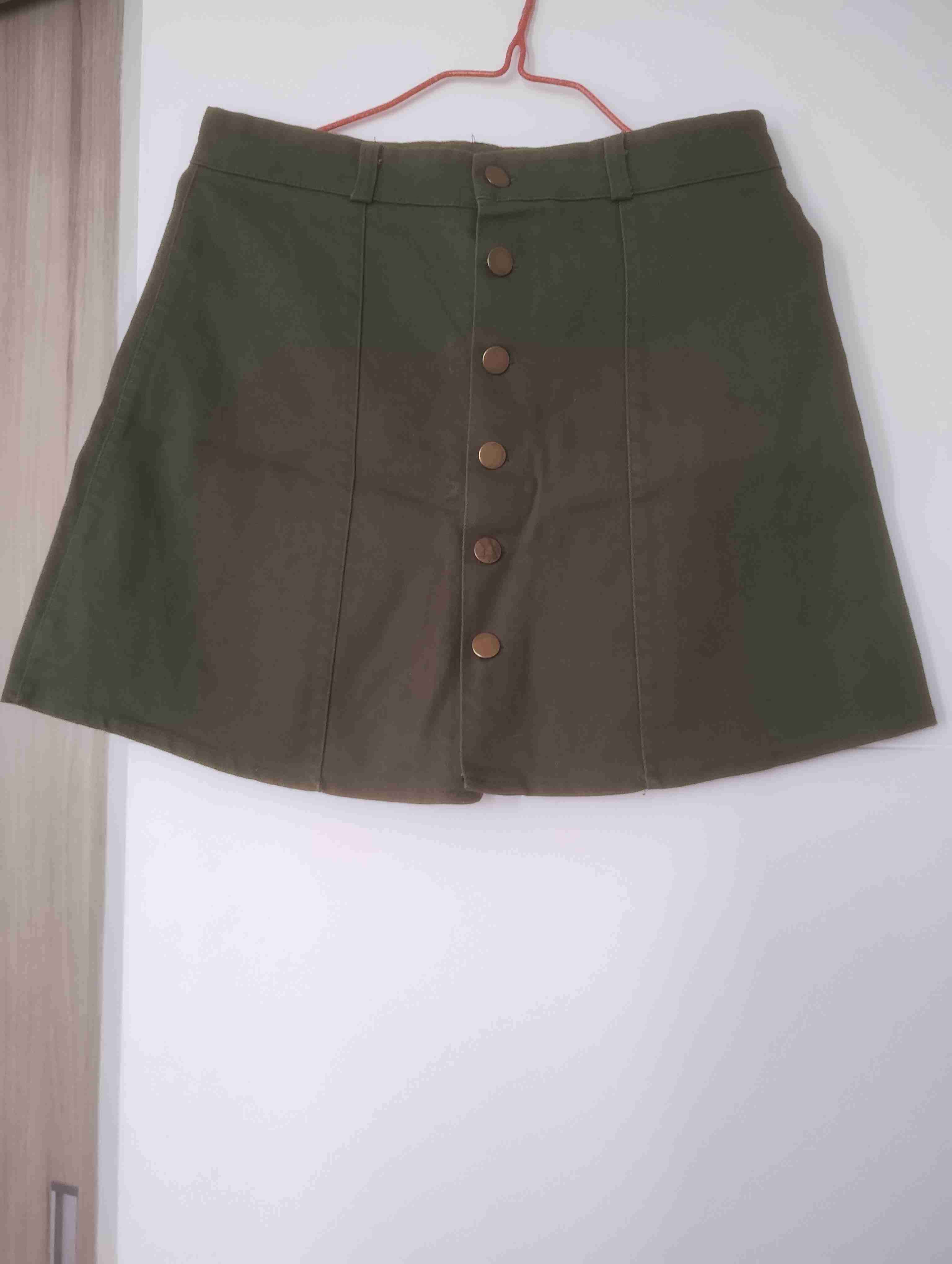 Falda estilo casual, color verde olivo con botones frontales. Ideal para el día a día, en buen estado.