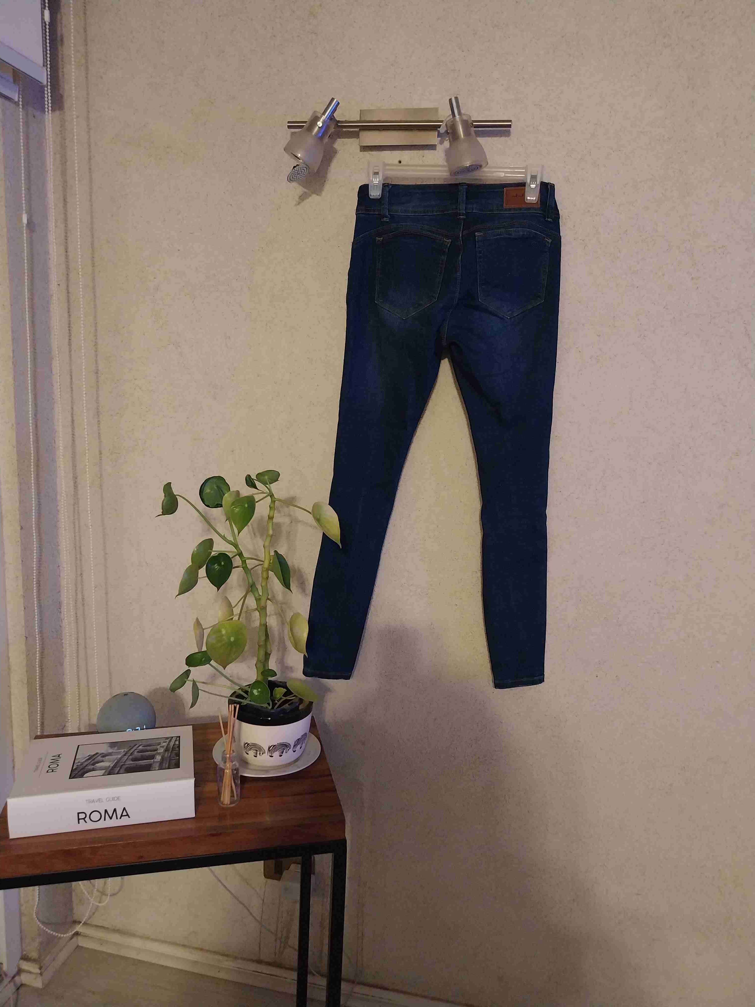 Jeans ajustados para mujer en buen estado, color azul oscuro. Ideal para el uso diario.