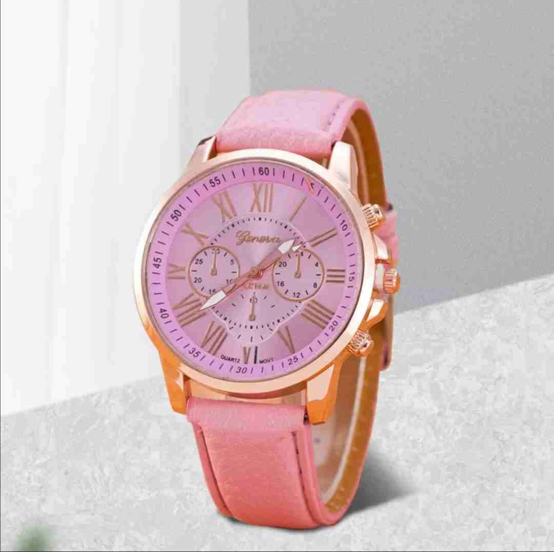 Reloj de muñeca con correa rosada, ideal para ocasiones formales. En buen estado y funcional.