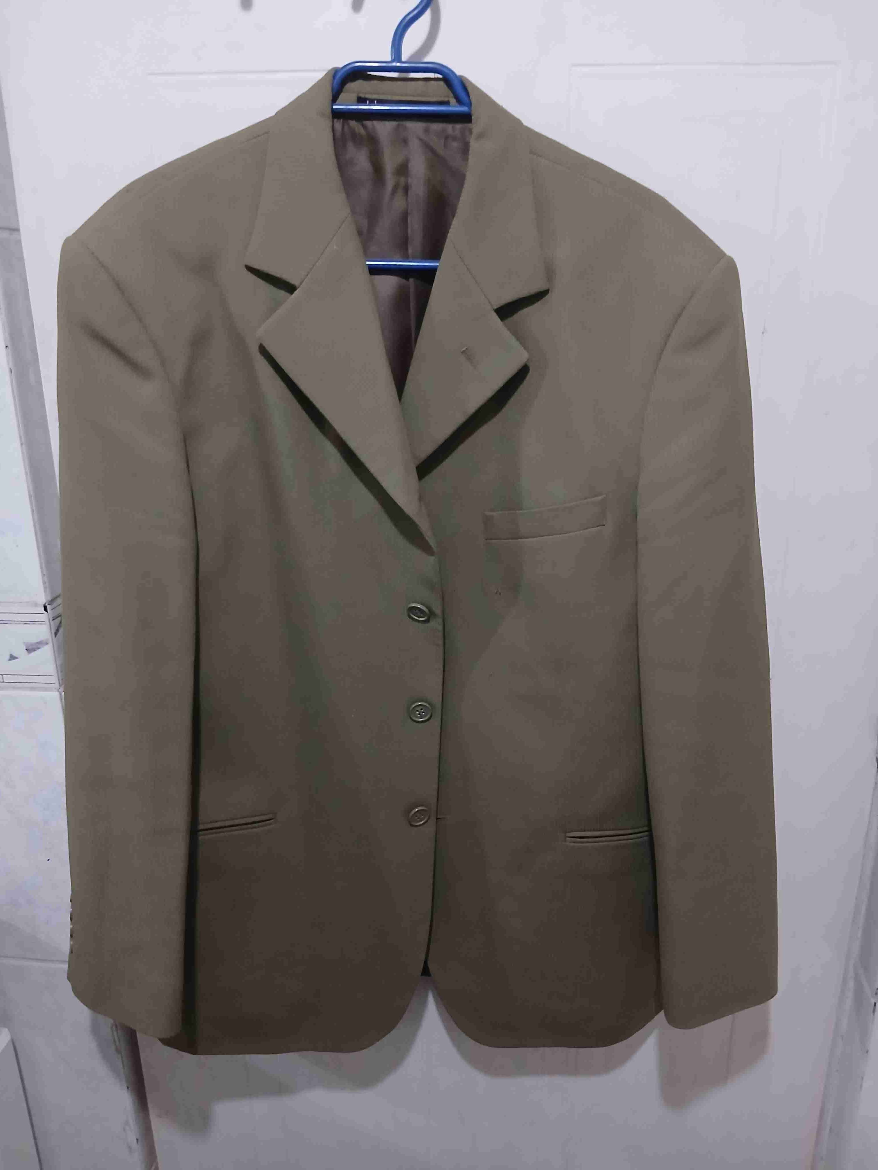 Blazer marrón en buen estado, ideal para ocasiones formales. Pequeños signos de uso.