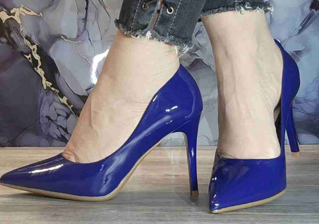 Zapatos de tacón alto en color azul eléctrico, perfectos para eventos formales.