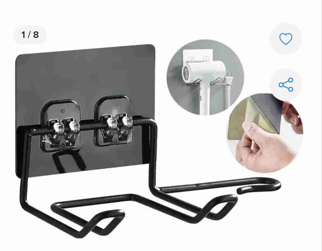 Práctico soporte adhesivo para colgar secador de cabello. Ideal para organizar el baño.