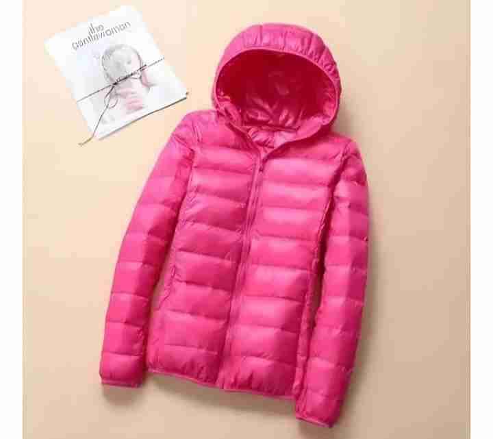 Elegante chaqueta rosa acolchada, ideal para días fríos. En buen estado.