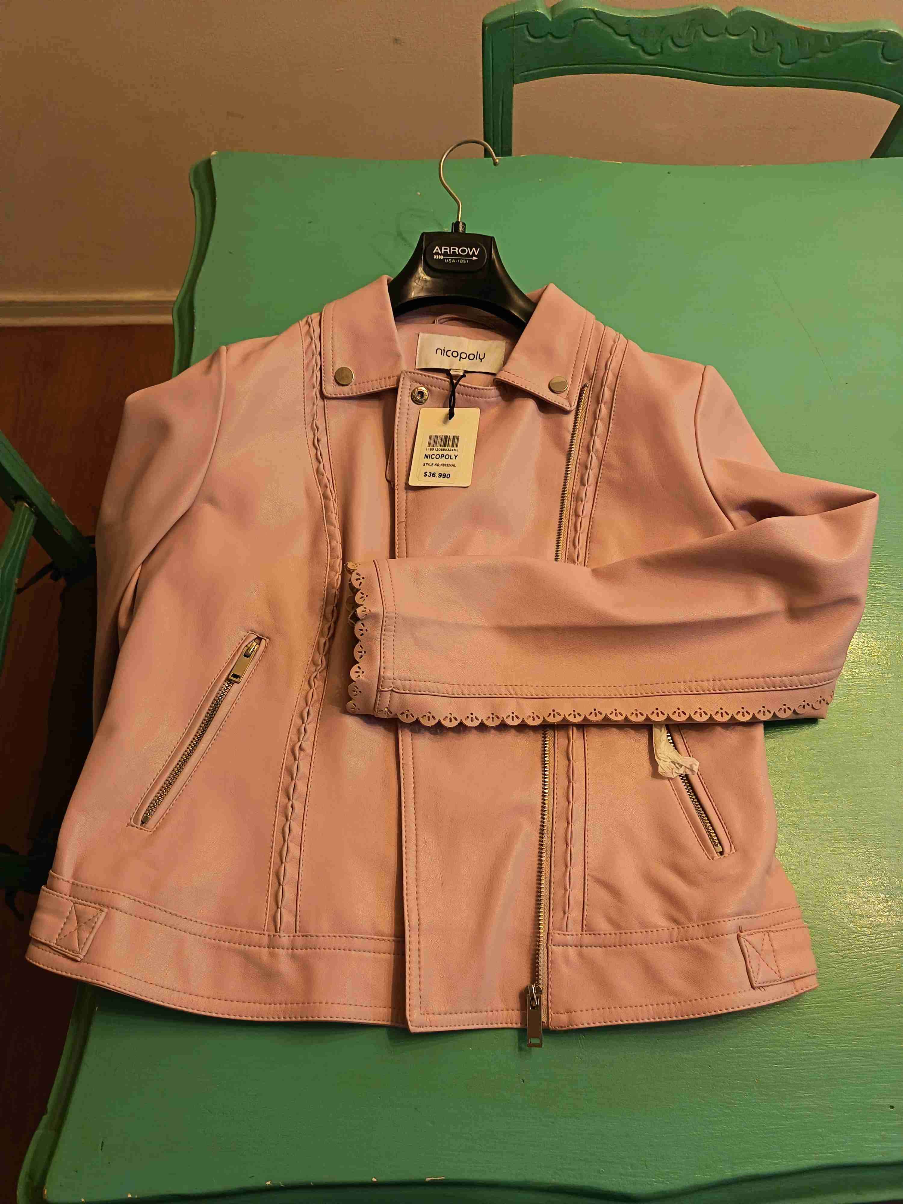 Chaqueta de mujer, color rosa, eco cuero, elegante y sin uso. Perfecta para ocasiones especiales o uso diario. Talla L pero es más una M