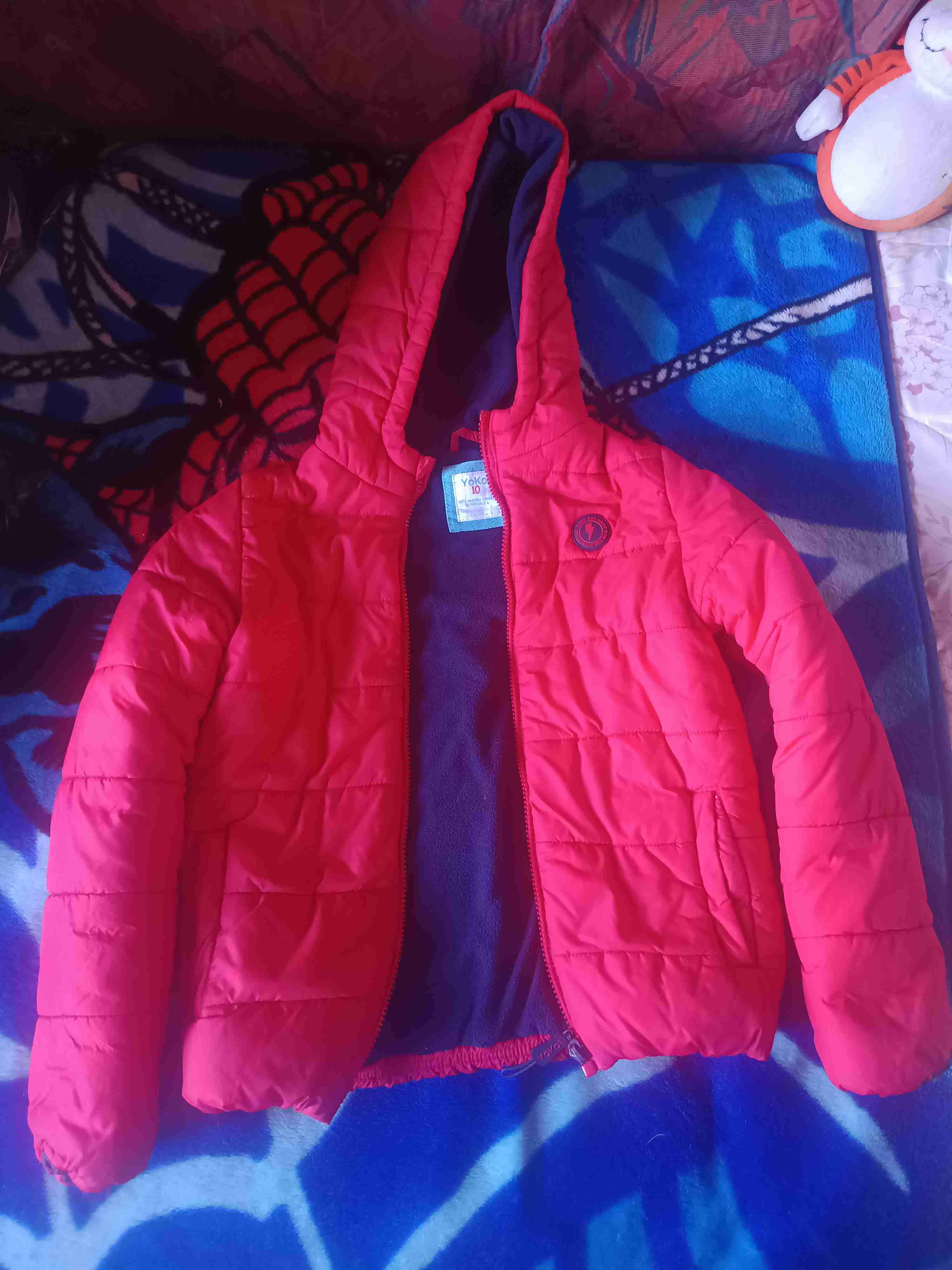 Chaqueta acolchada roja para niño, ideal para el frío. Muy buen estado general, casi nueva, con capucha para mayor abrigo. Forrada con polar azul marino, solo leve desgaste casi imperceptible de uso en los puños. Marca YoKo talla 10