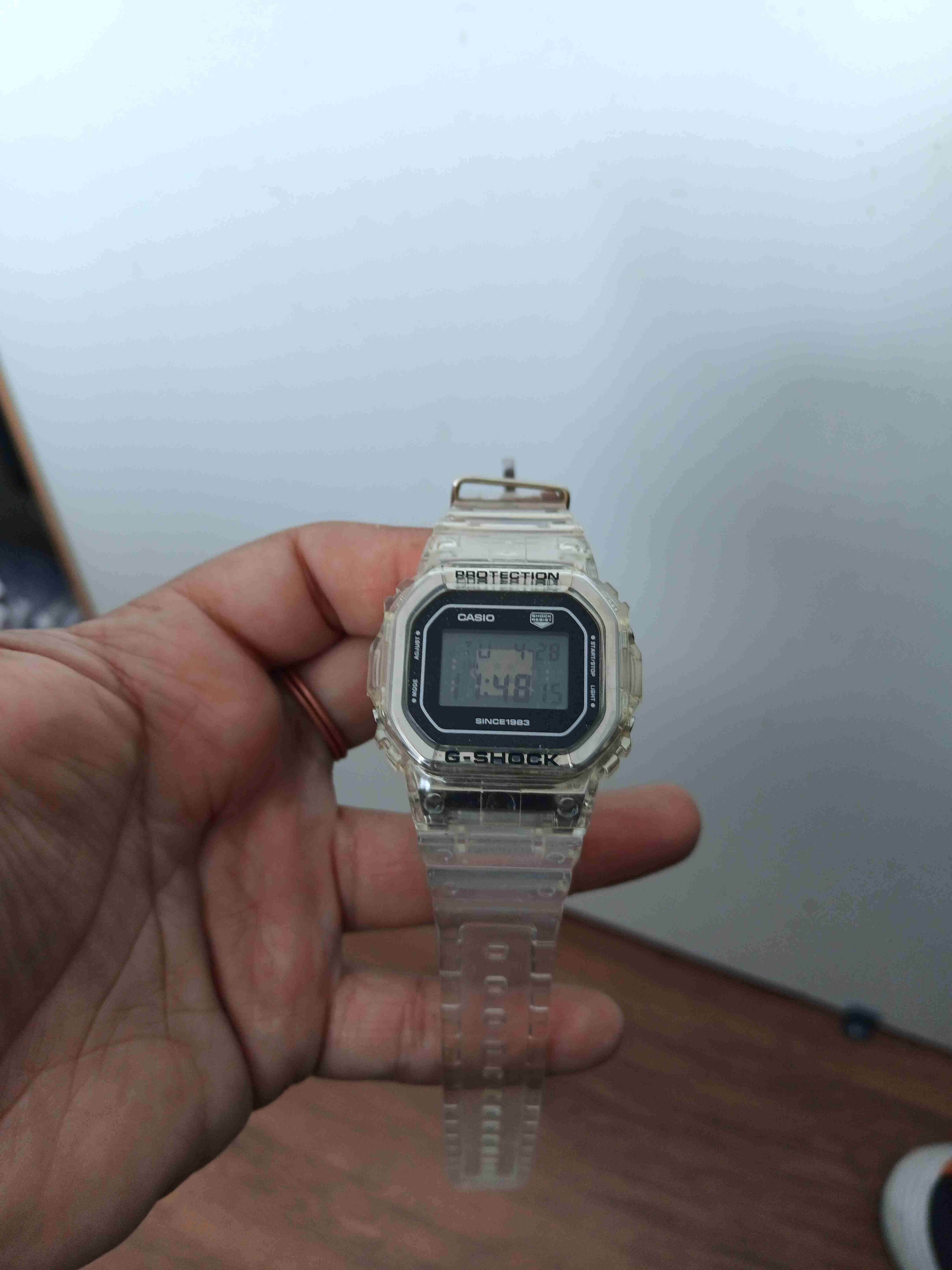 Reloj digital Casio G-Shock en buen estado, con correa transparente. Perfecto para uso diario gracias a su resistencia. Edición especial de 40 años.