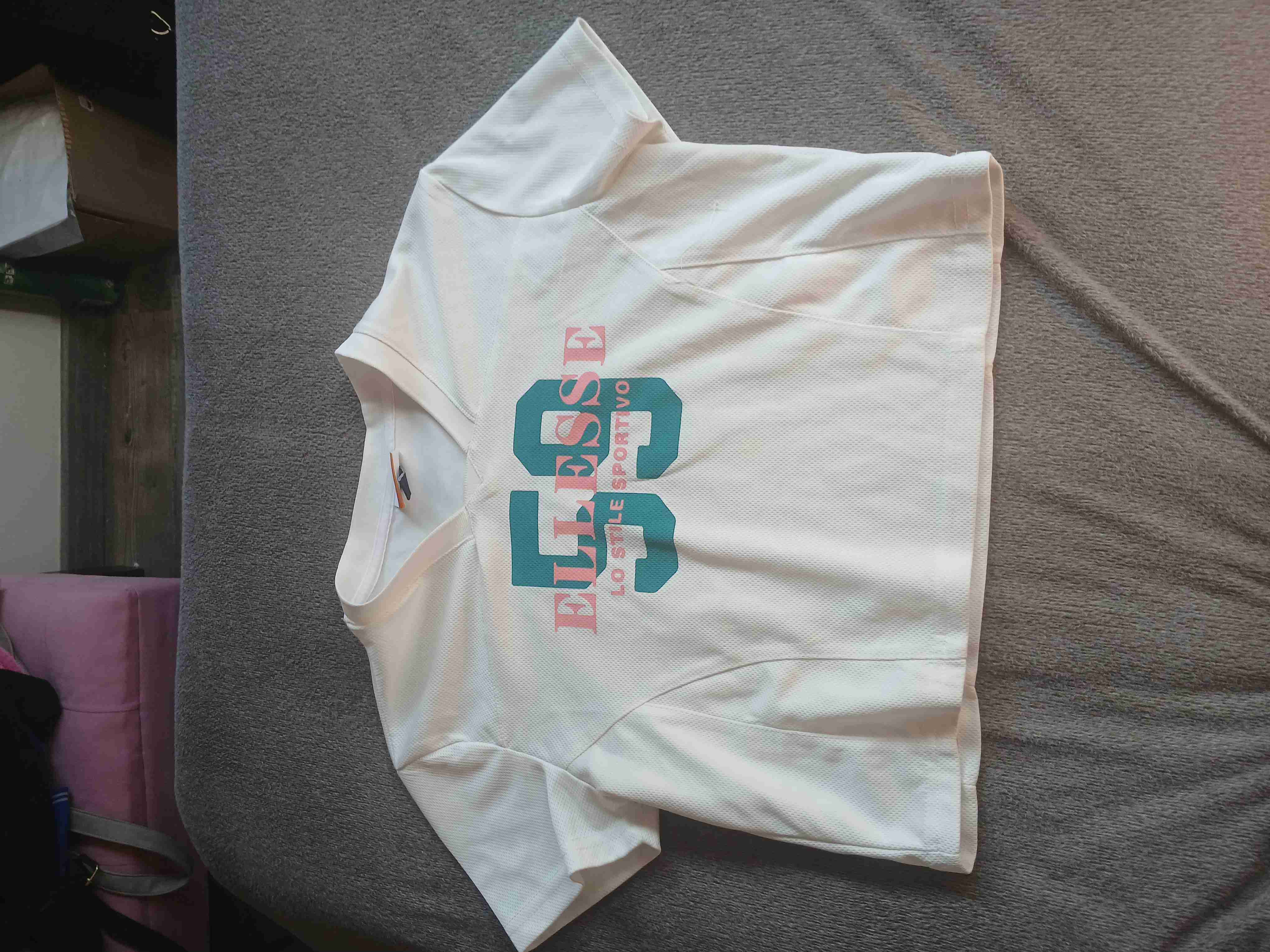 Polera blanca con diseño deportivo de Ellesse. En buen estado, perfecta para uso casual o deportivo.