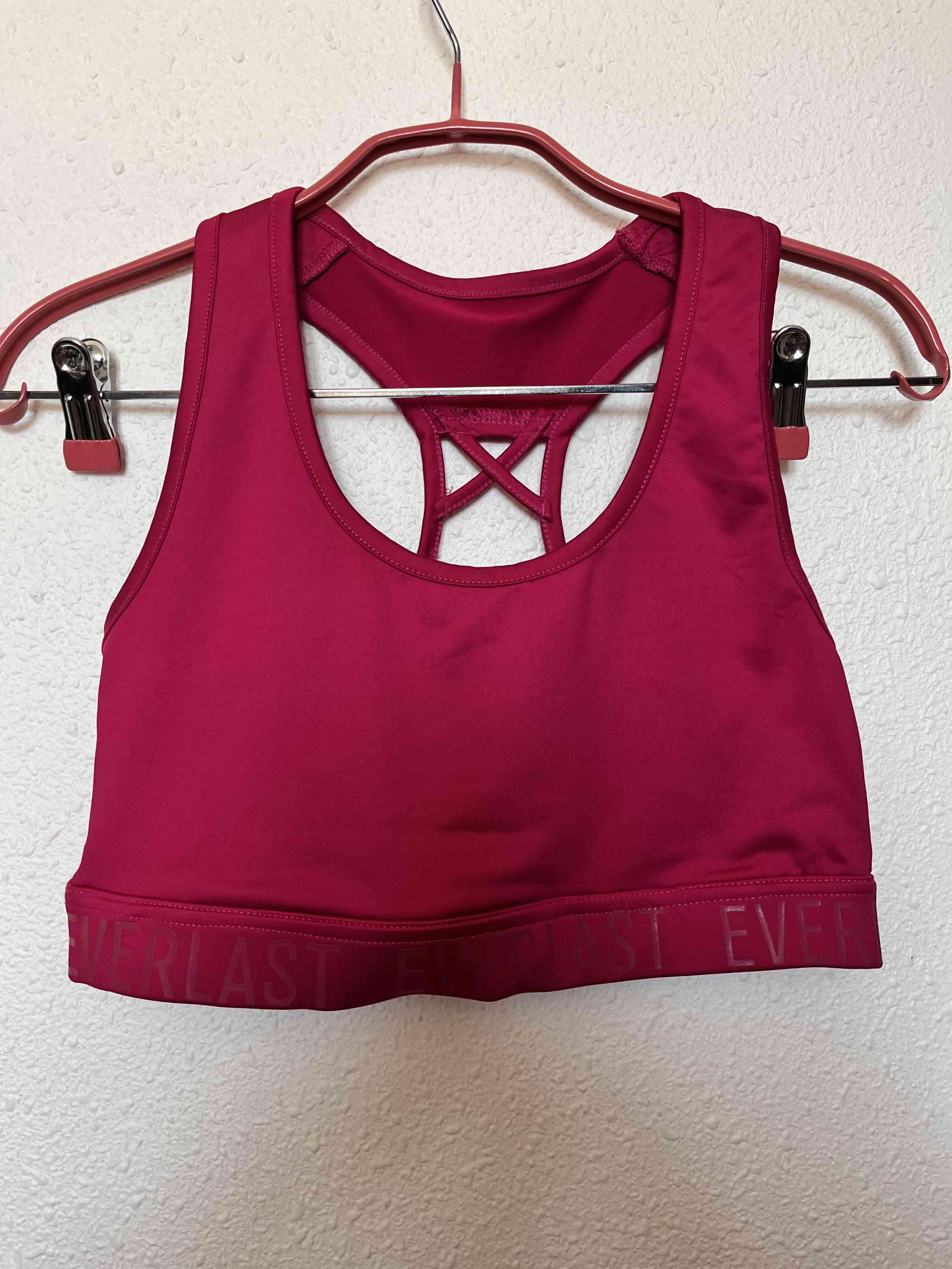 Top deportivo en color fucsia, ideal para entrenar. En excelente estado, con detalle de diseño en la espalda. Talla M, marca Everlast.