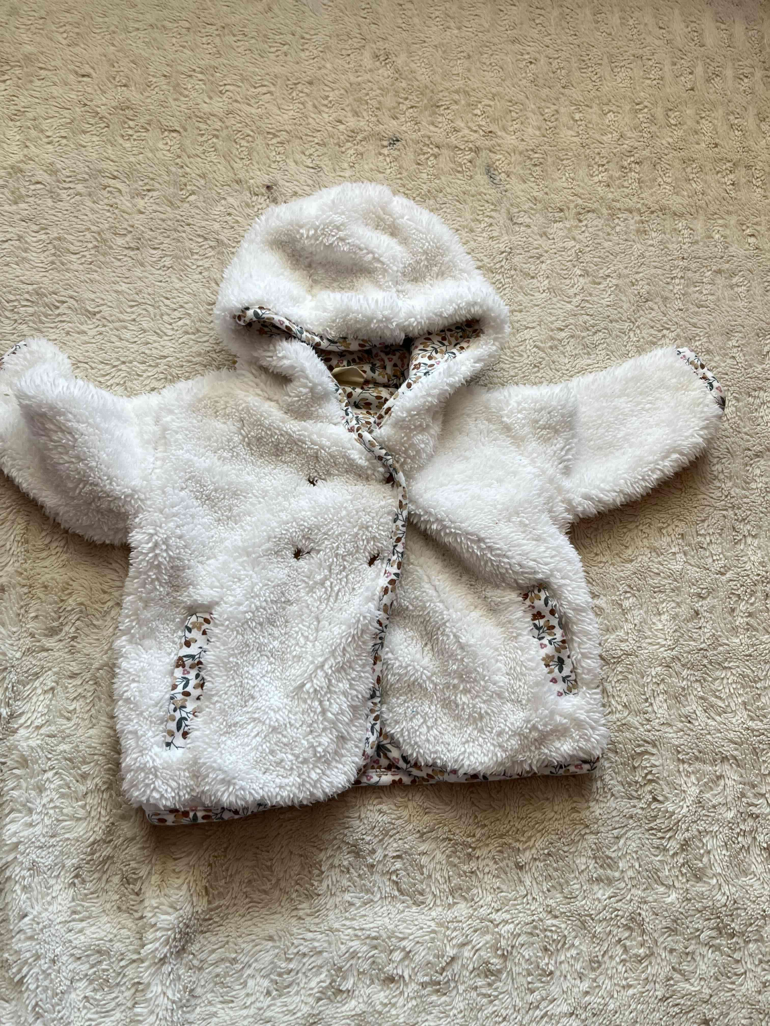Chaqueta de bebé blanca, suave y calentita, con capucha y forro estampado. Perfecta para el invierno. 0 a 3 meses (niña)