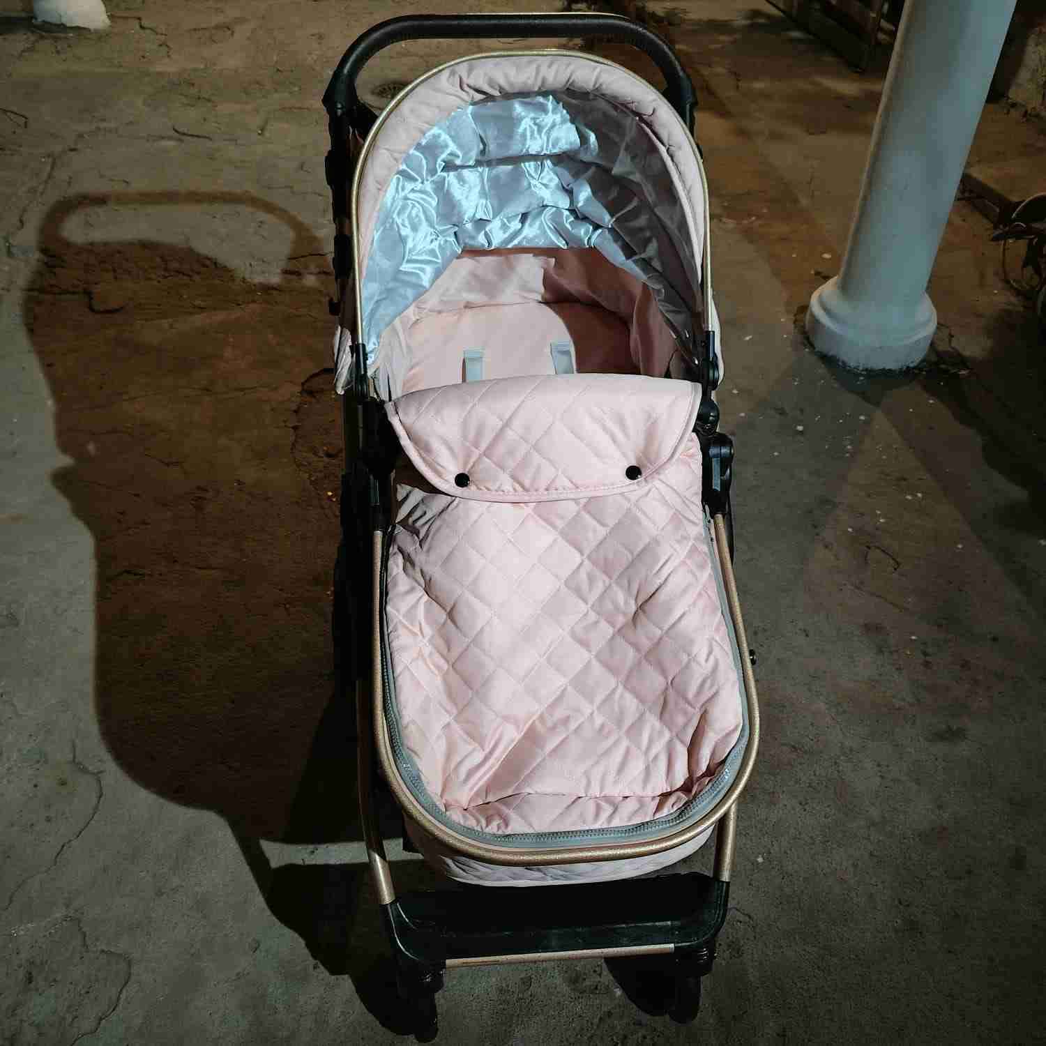 Coche de bebé acolchado en color rosa, ideal para paseos cómodos. Buen estado general con uso leve.