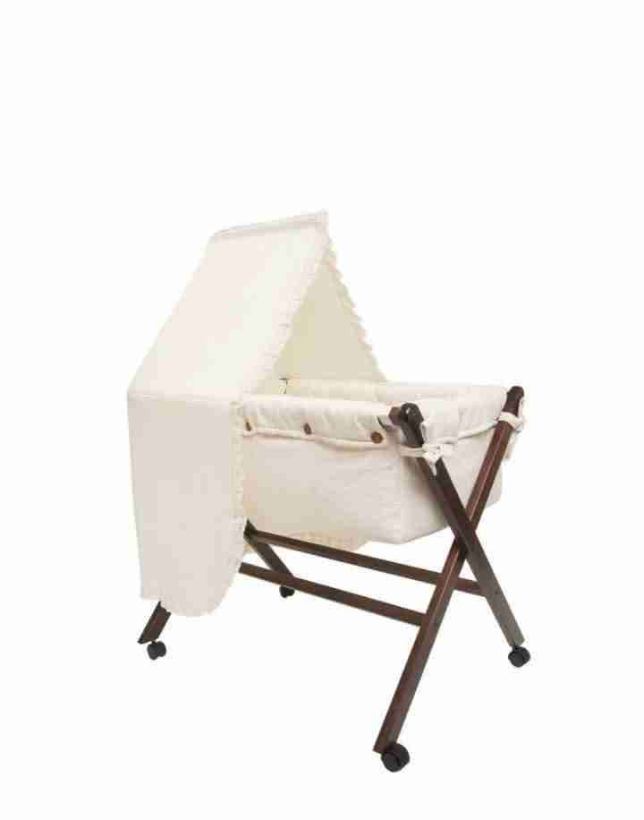 Moisés para bebé en color beige con estructura de madera, fácil de trasladar. Ideal para recién nacidos, en buen estado, de regalo un juego de sábanas y plumón. El velo no lo tiene