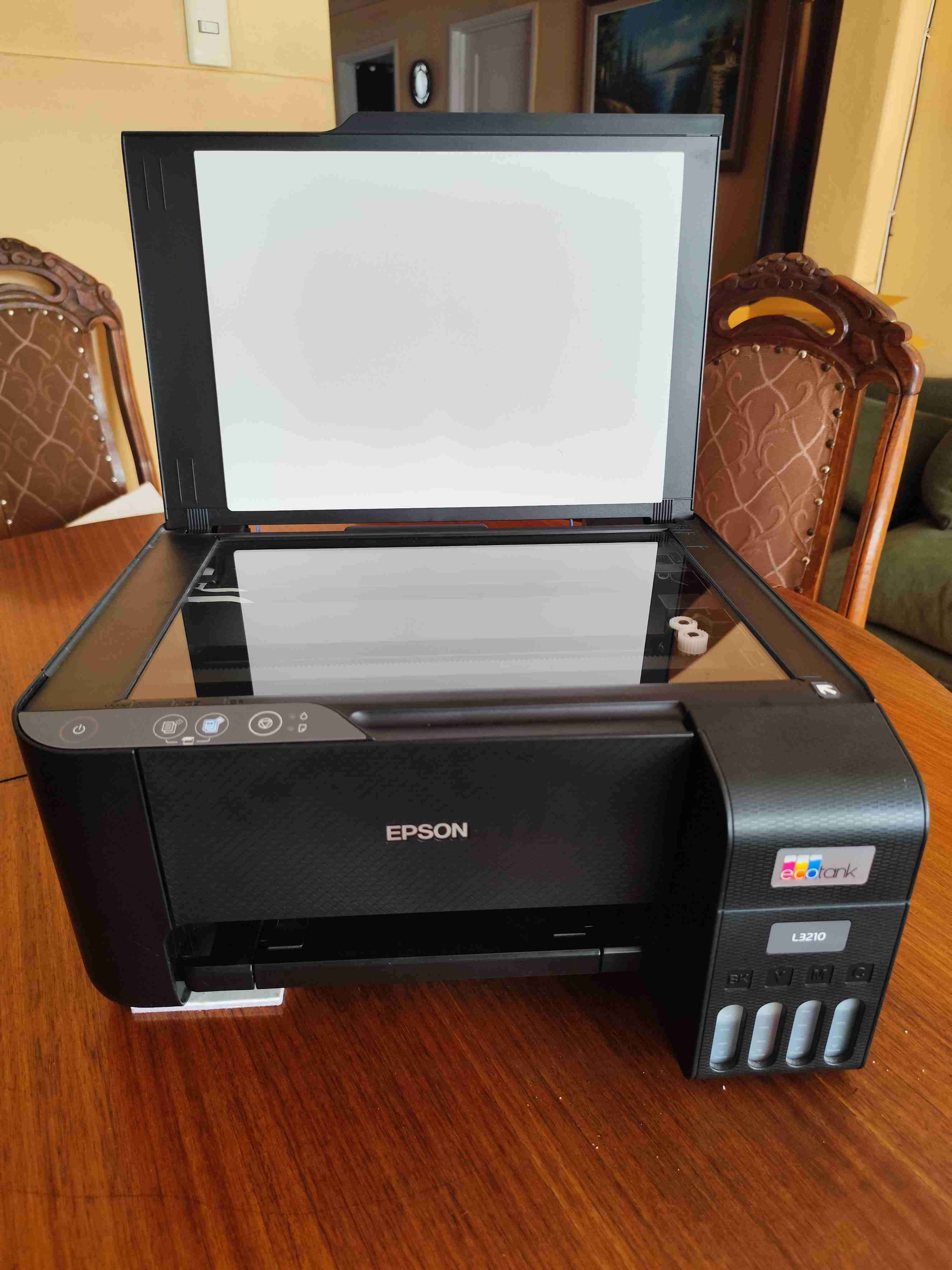 Impresora multifuncional Epson en buen estado. Ideal para hogar u oficina, con capacidad de tinta EcoTank para mayor economía. Tiene los tanques de tinta casi llenos.