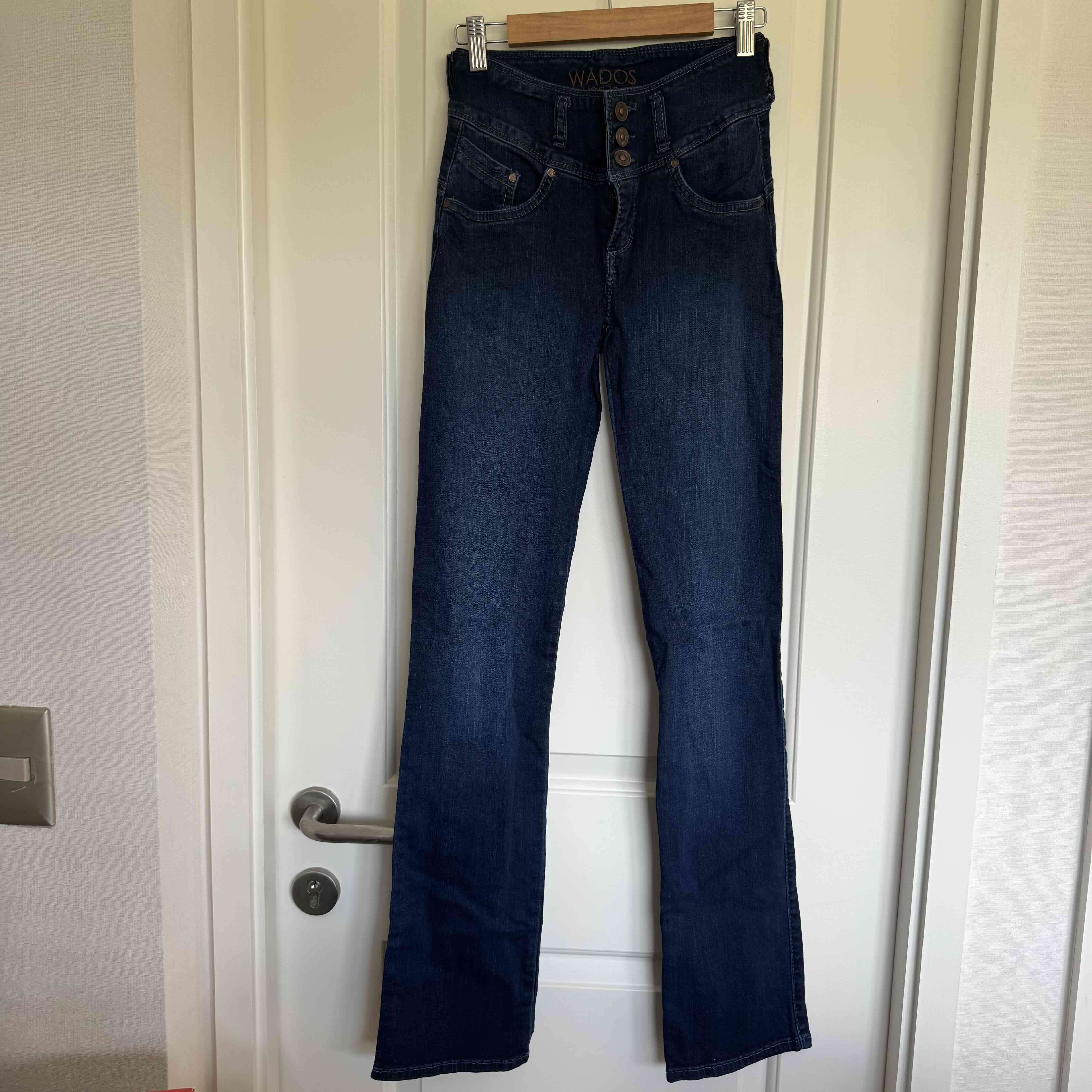 Jeans azul de corte recto en buen estado. Ideal para uso diario, con cierre de botones visible.