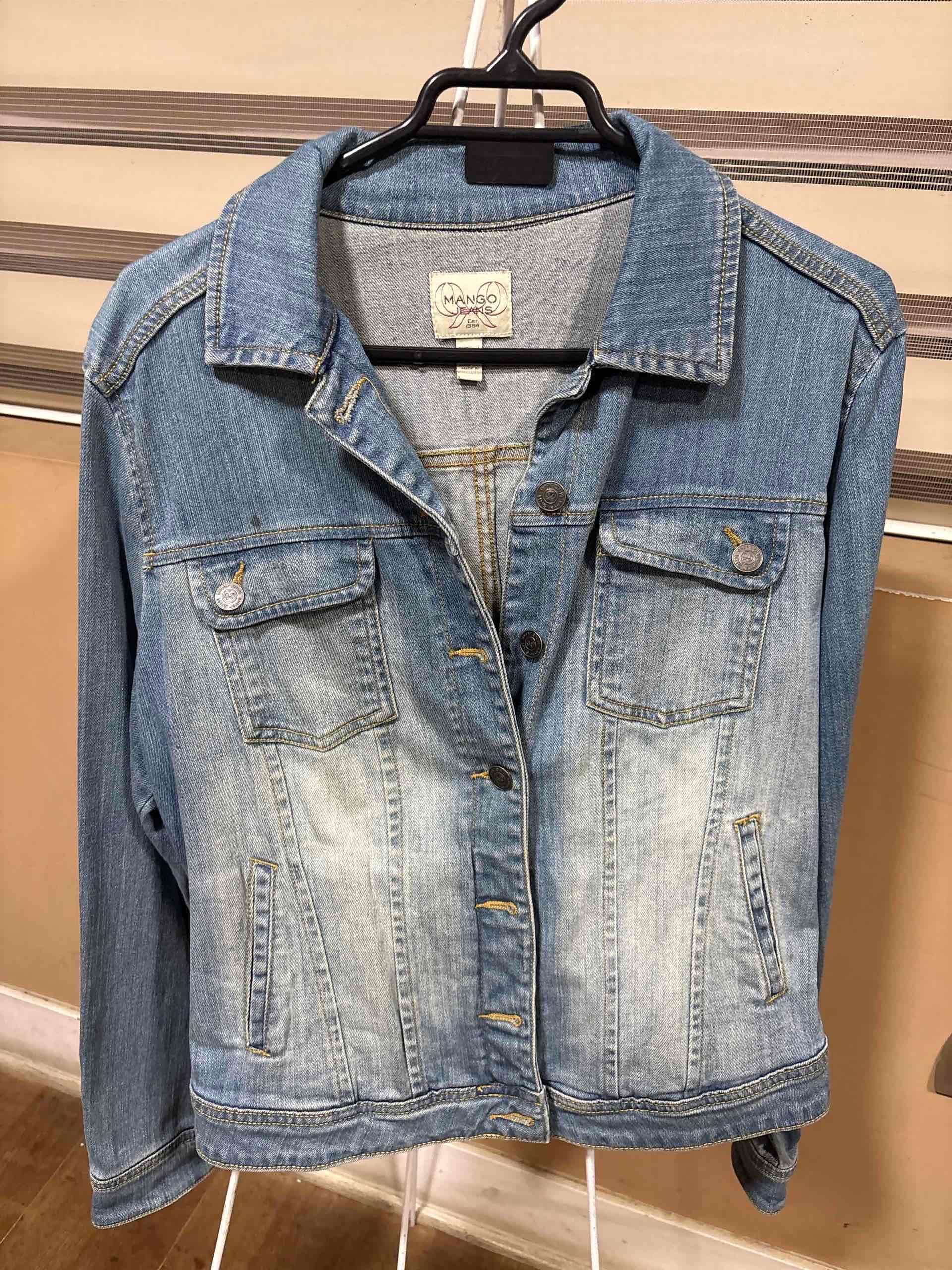 Chaqueta de mezclilla azul, de estilo clásico y en buen estado general. Ideal para días frescos.