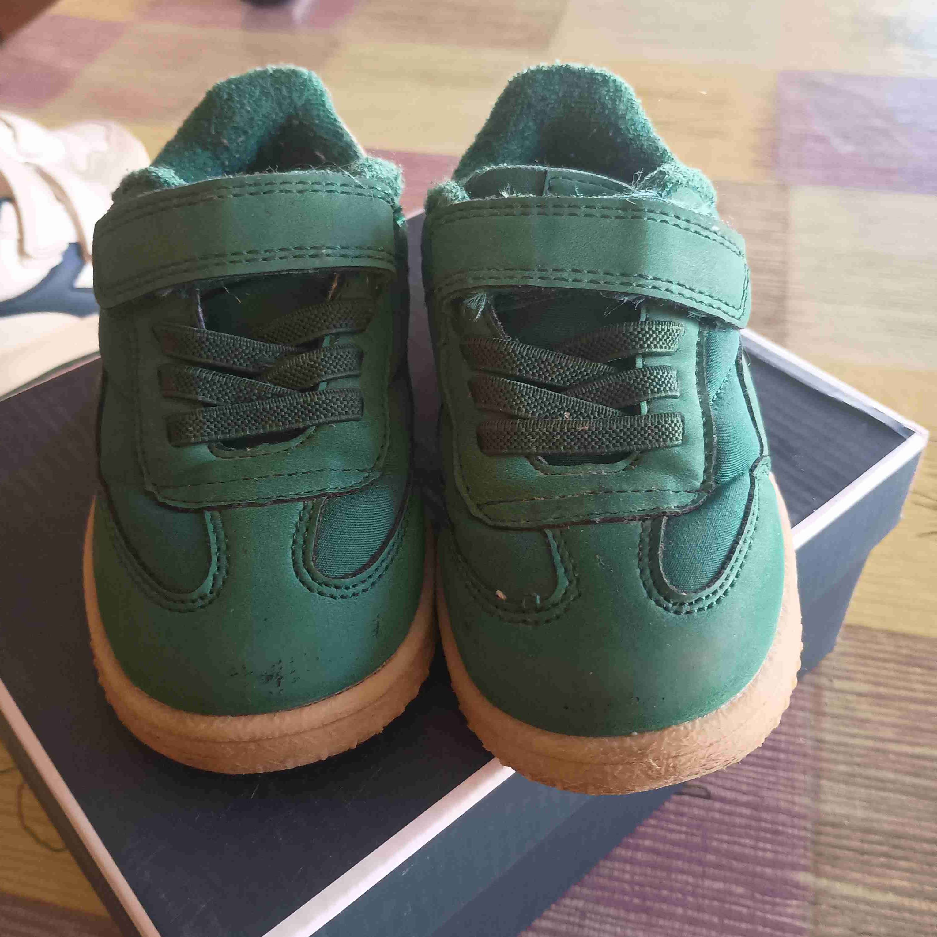 Zapatos deportivos verdes para niño, cómodos y con cierre ajustable. Ligeros signos de uso. Número 24