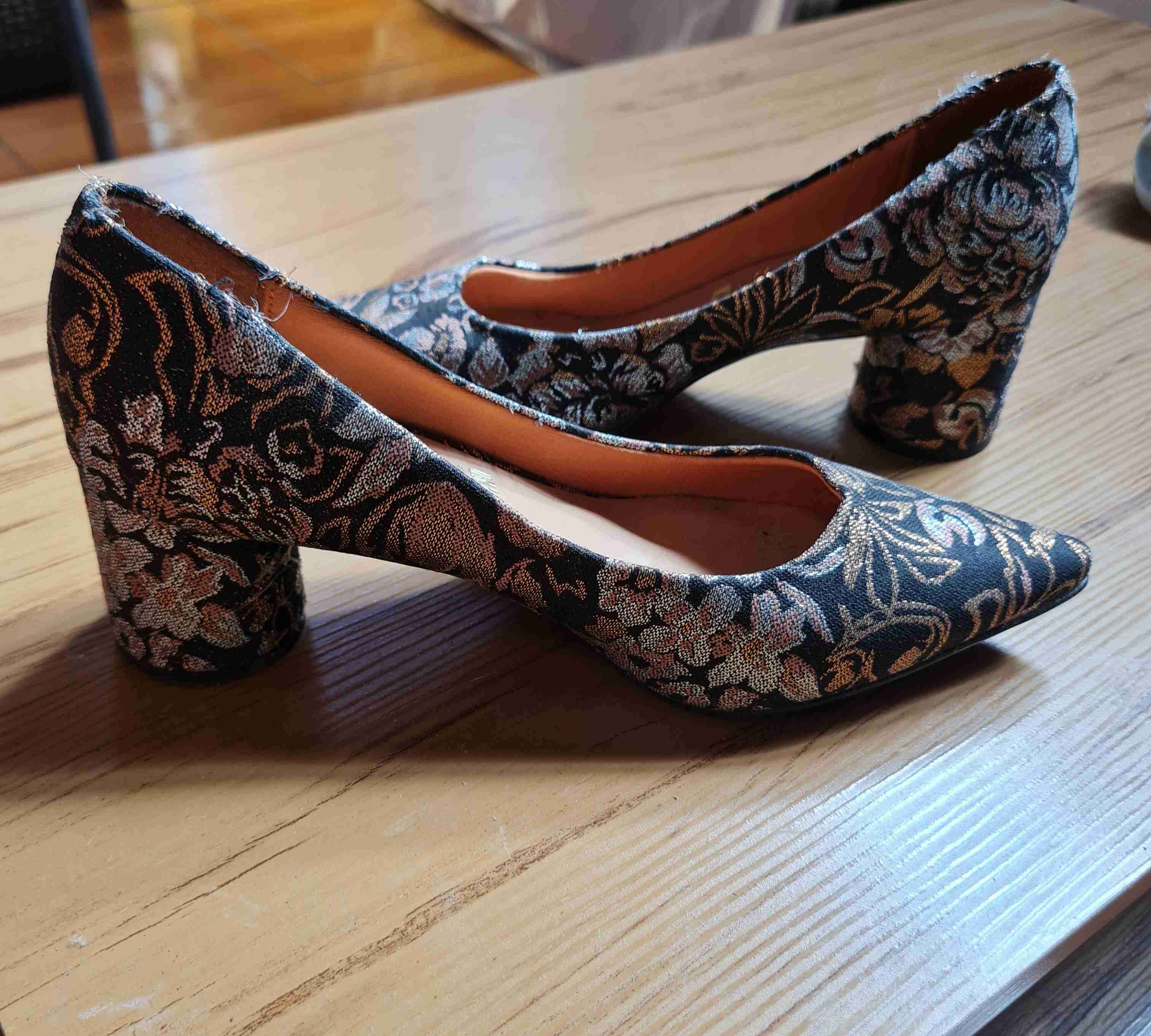 Elegantes zapatos de tacón con diseño floral bordado. En buen estado para ocasiones especiales.