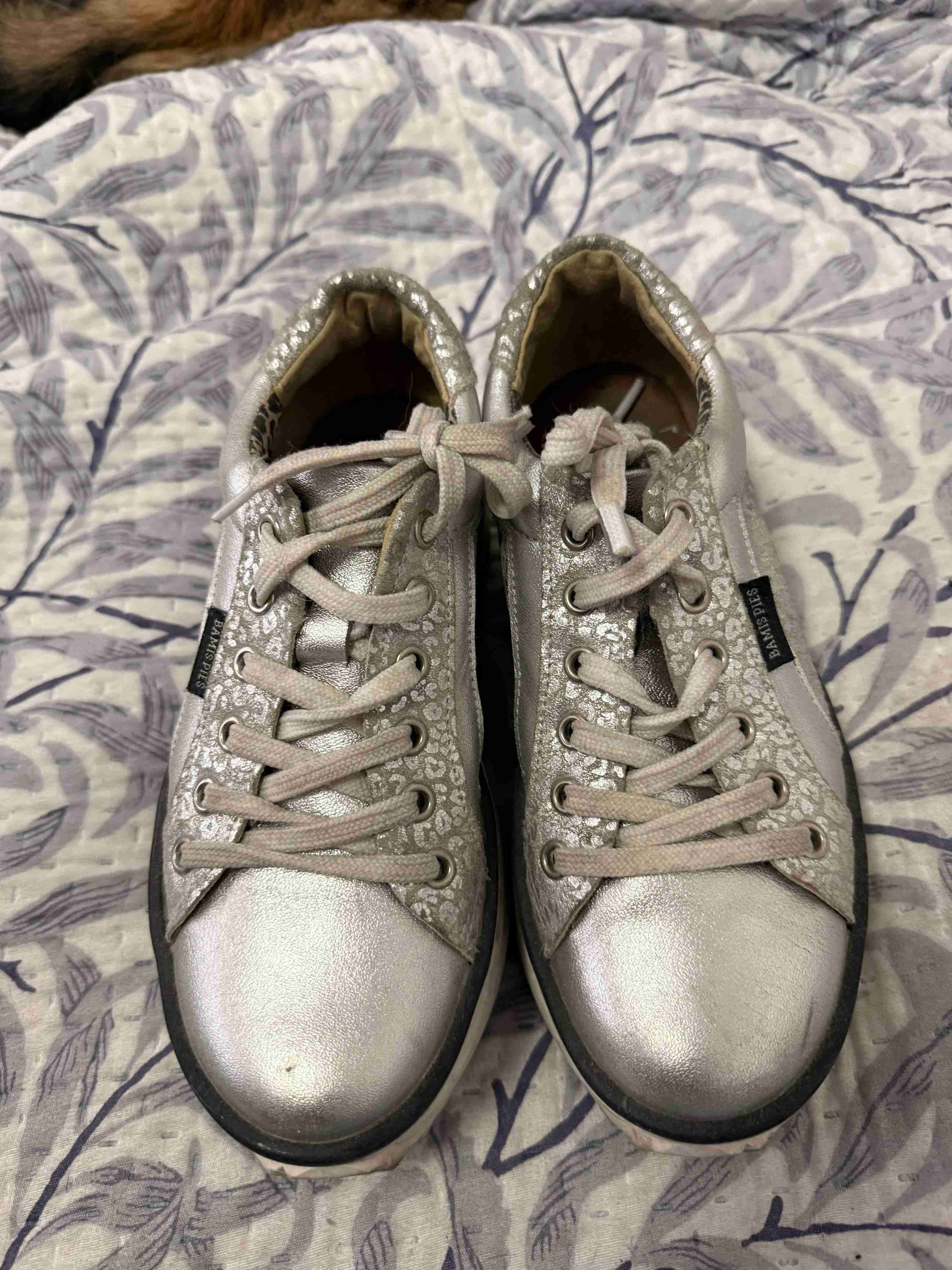 Zapatillas deportivas plateadas para un look casual. En buen estado con signos leves de uso. Perfectas para el día a día.