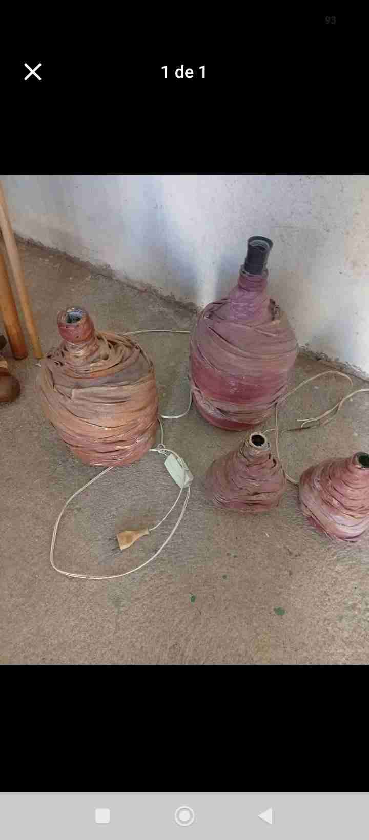 Conjunto de lámparas de estilo rústico hechas en botellas ideales para decoración de interiores o exteriores. Estado aceptable.