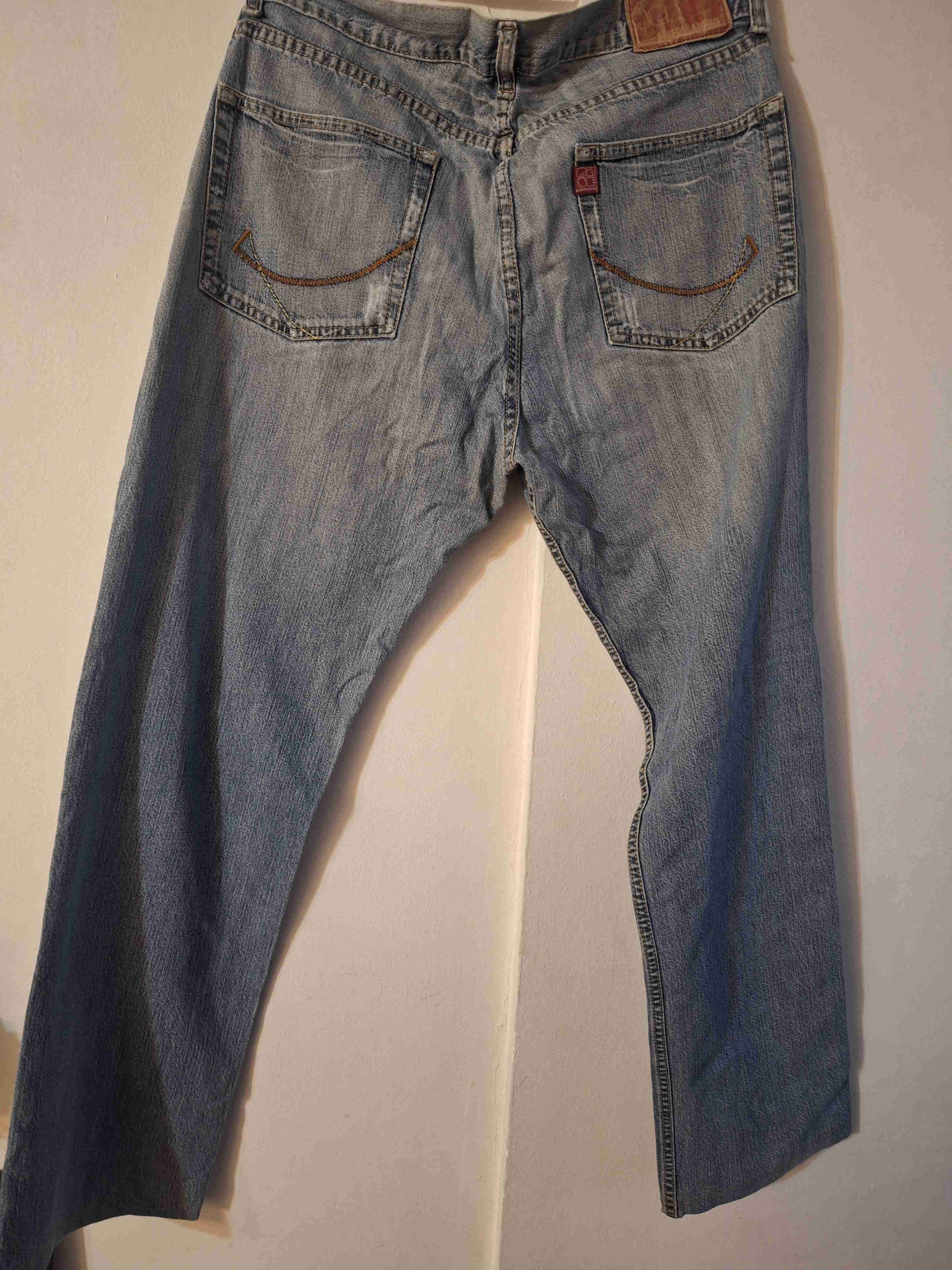 Jeans de mezclilla azul claro, estilo clásico, con signos leves de uso. Perfectos para uso diario.