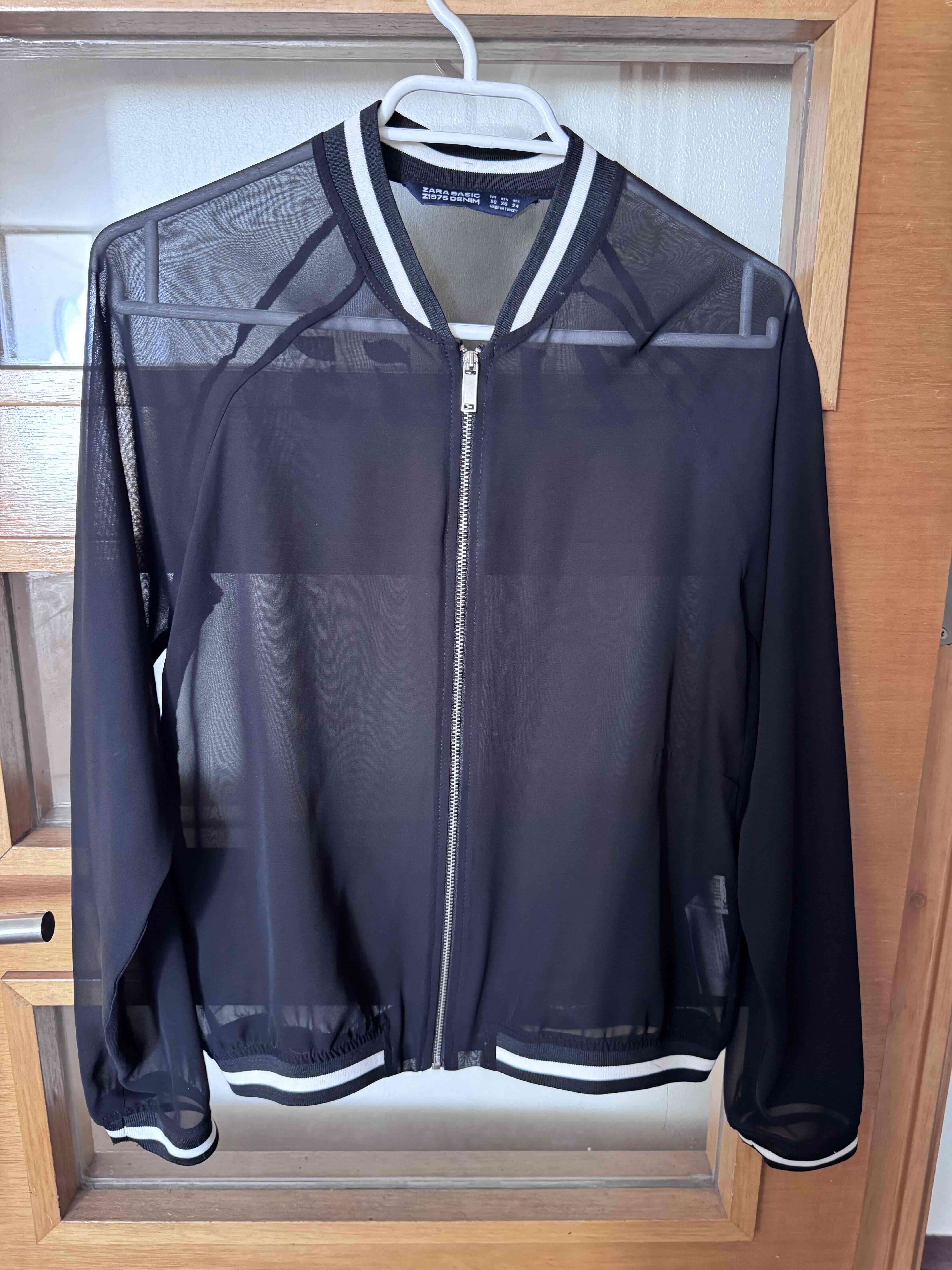 Chaqueta estilo bomber negra transparente con cierre. Ideal para un look moderno y casual. Buen estado.