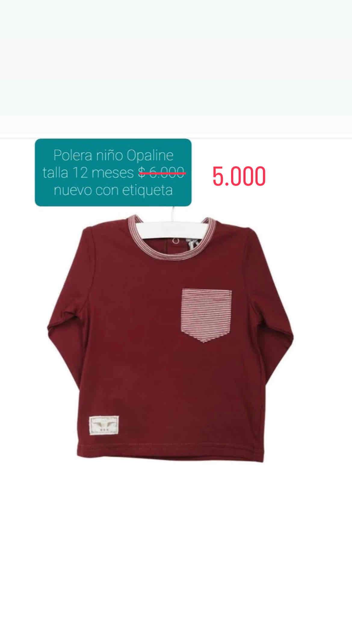 Polera niño color burdeos con bolsillo, ideal para 12 meses. Nuevo con etiqueta.