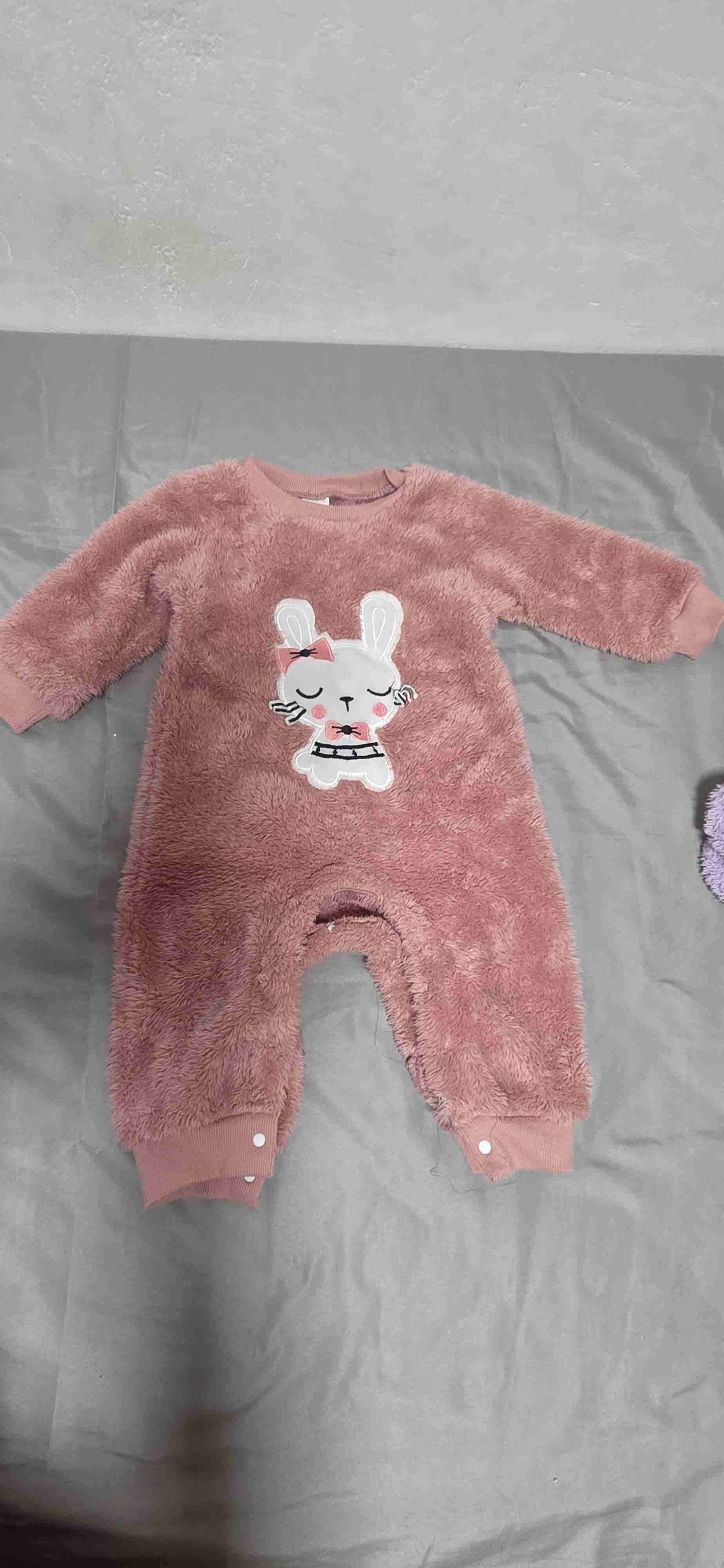 Enterito de bebé en suave tela rosada con diseño de conejo. Ideal para mantener al bebé abrigado y cómodo. En buen estado, perfecto para el día a día.
