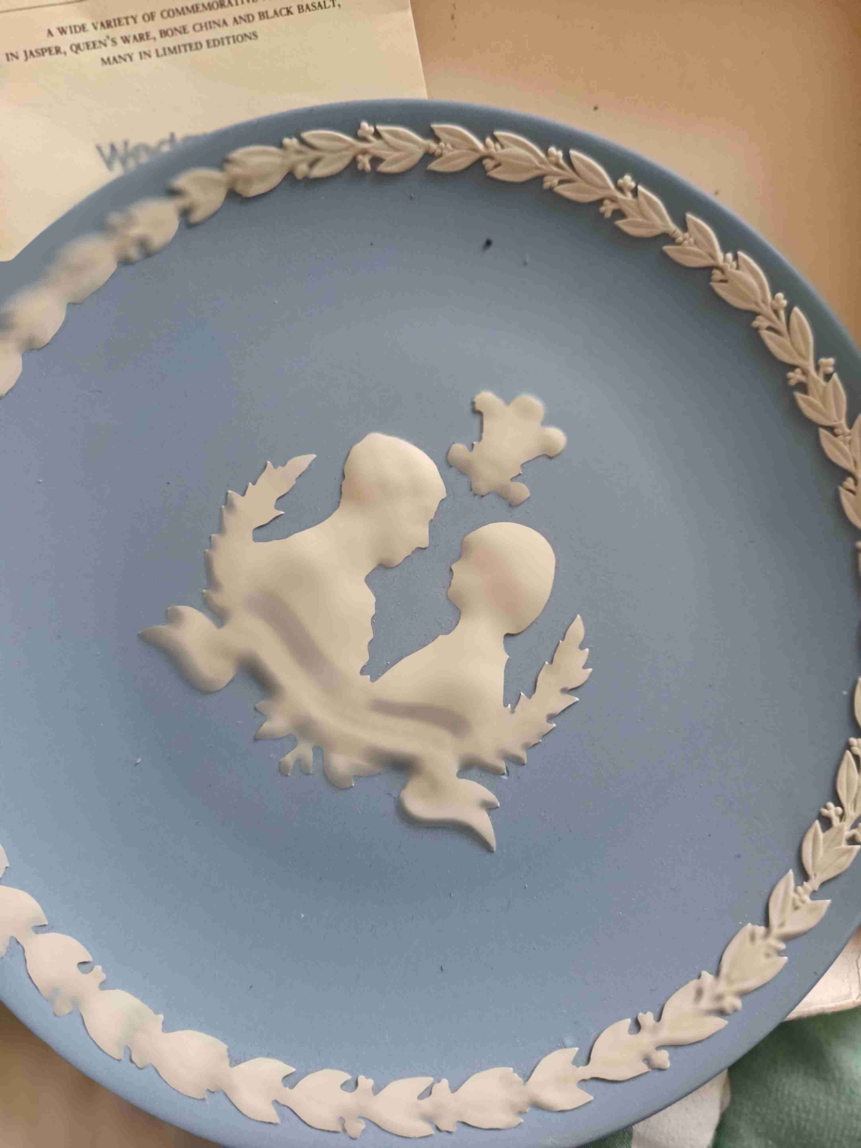 Elegante plato decorativo Wedgwood en cerámica azul. Ideal para exhibir en vitrinas.nuevo
