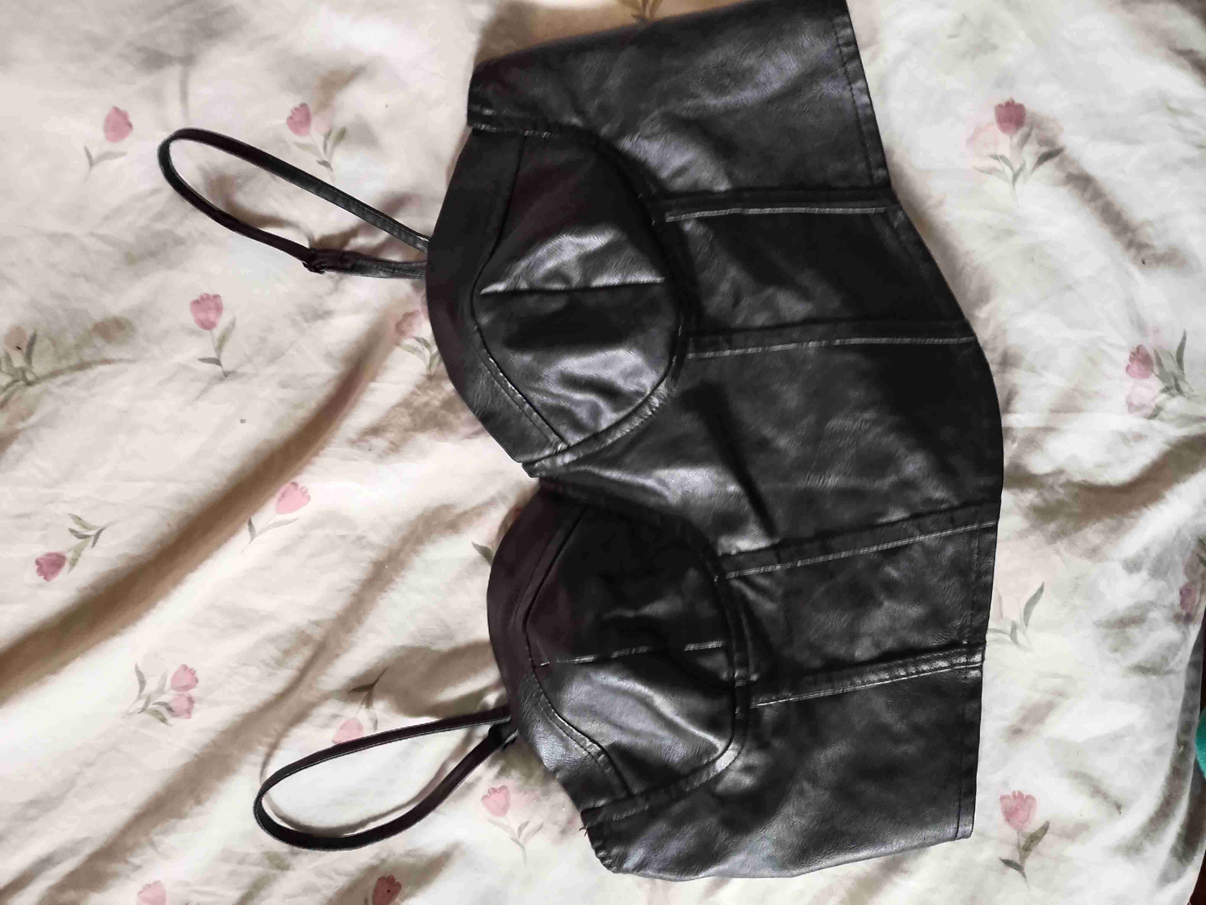 Top corto negro de cuero sintético, ideal para salidas nocturnas. Buen estado talla L