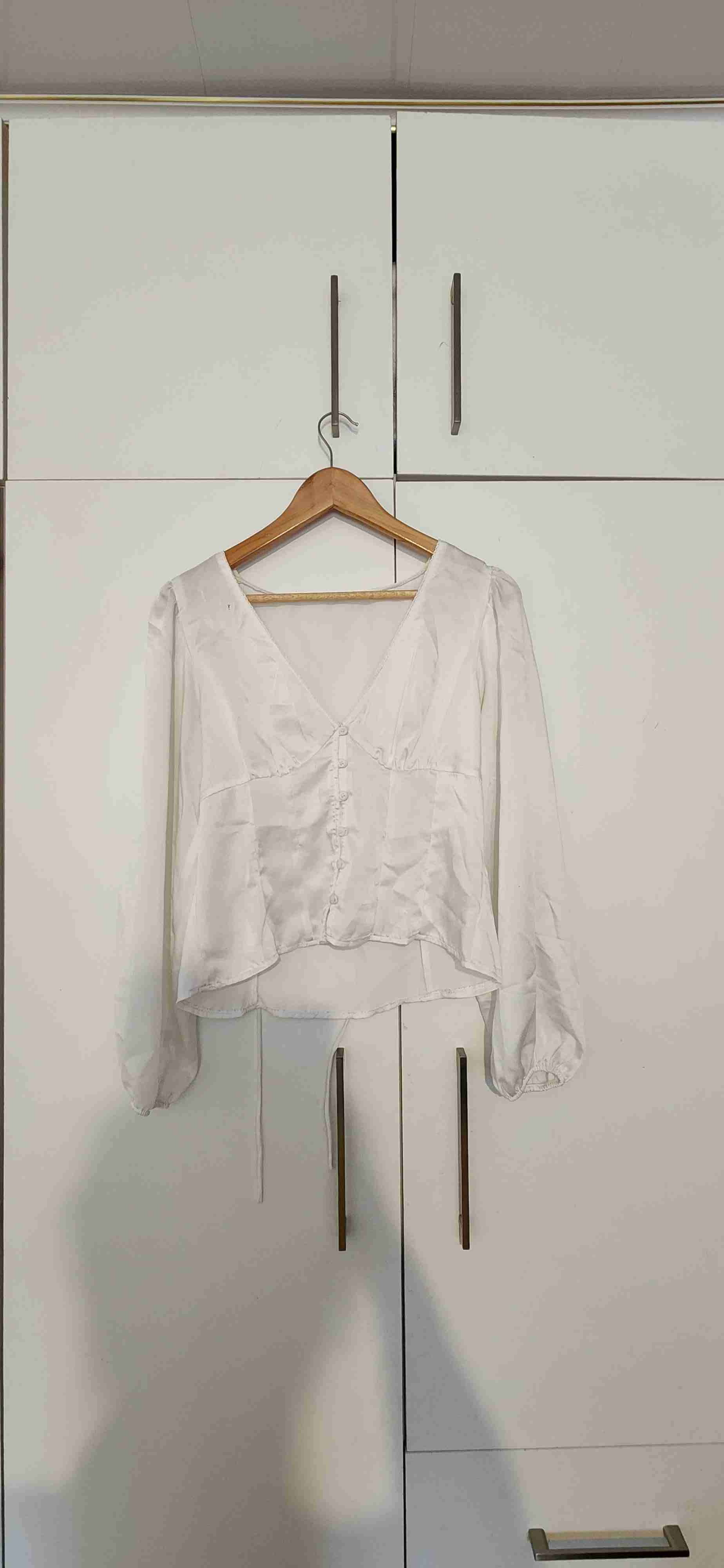 Blusa blanca elegante con botones frontales, ideal para ocasiones especiales. En buen estado con leve uso.