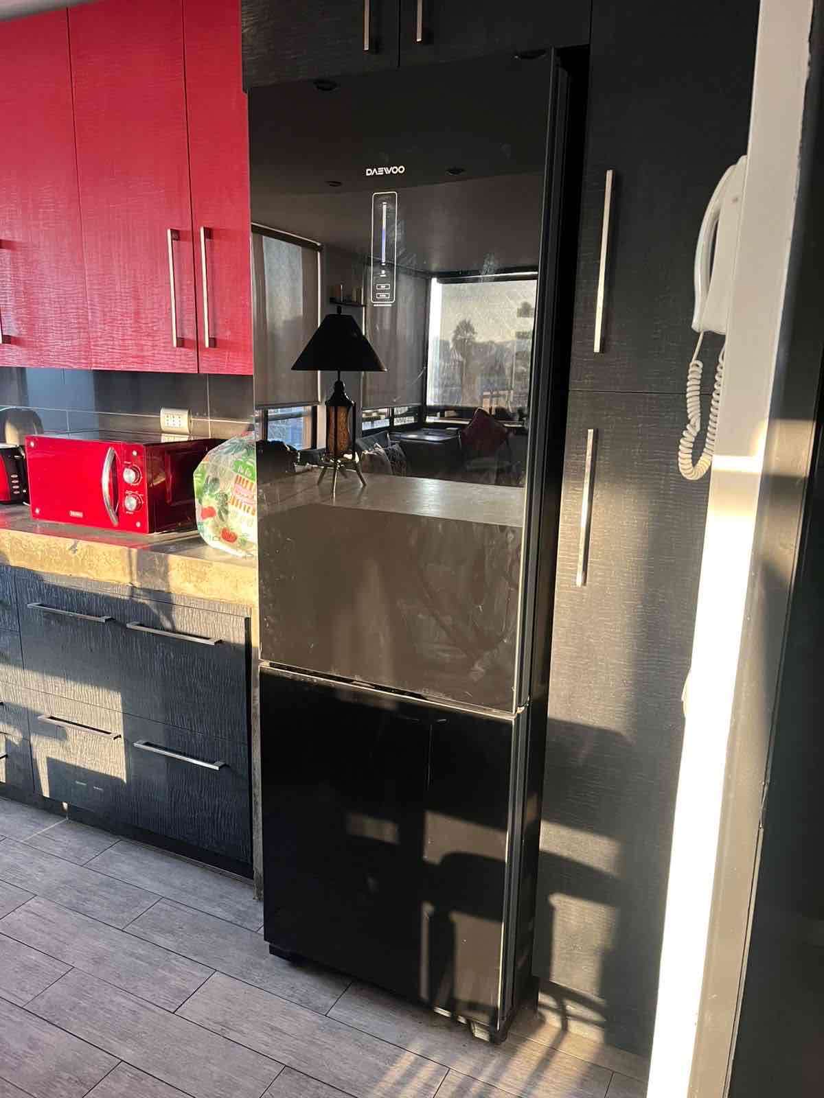 Refrigerador Daewoo de dos puertas en buen estado. Ideal para cocina moderna. Ligeros signos de uso pero funciona perfectamente.