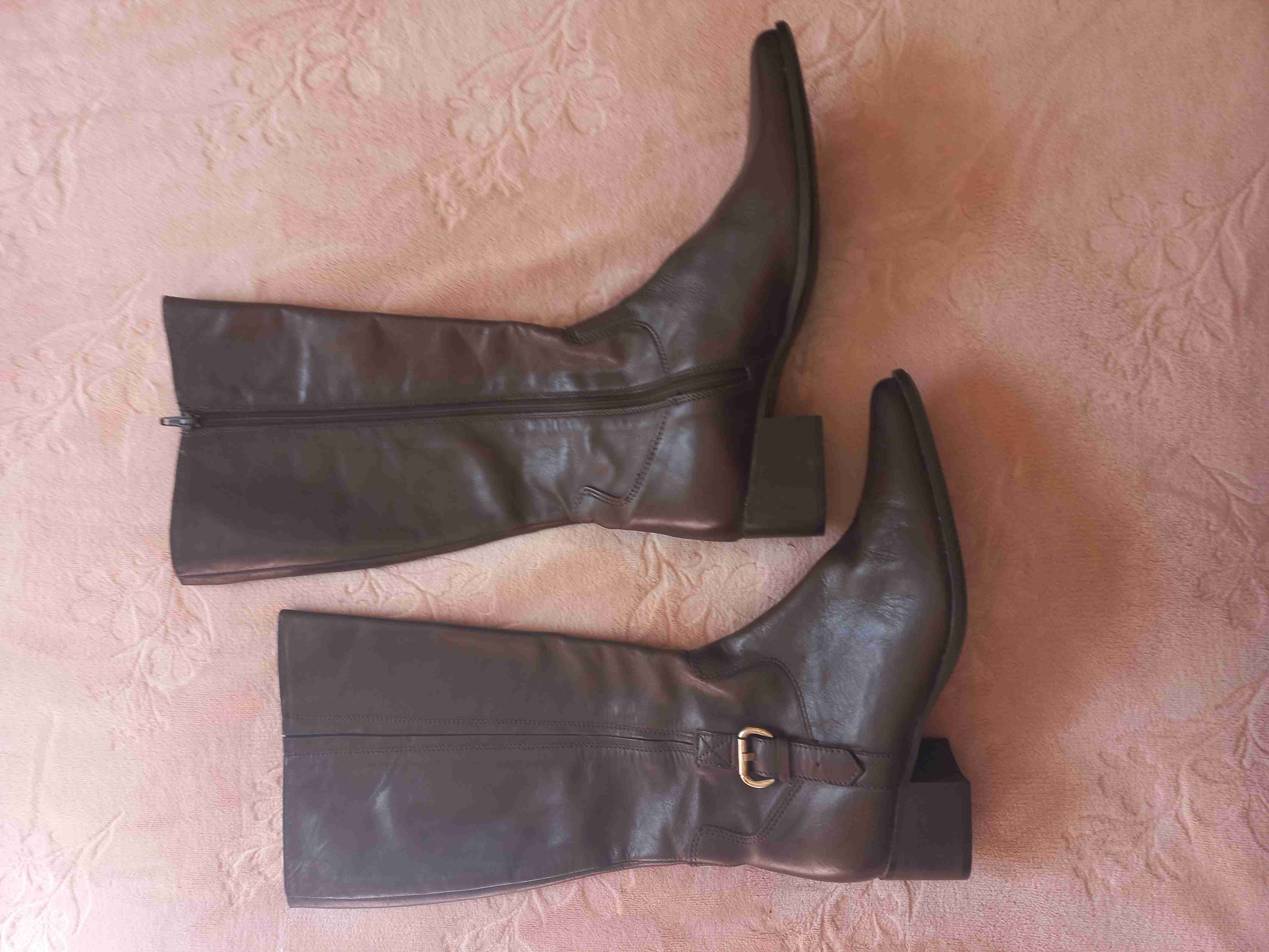 Elegantes botas largas de cuero marrón, nro. 38, largo de caña 37cm