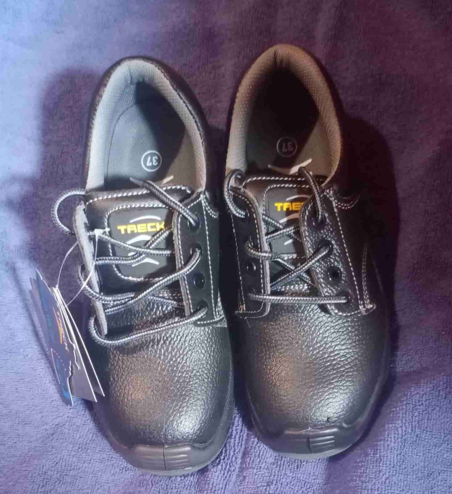Zapatos de seguridad nuevos, perfectos para trabajo. Diseño cómodo y resistente.