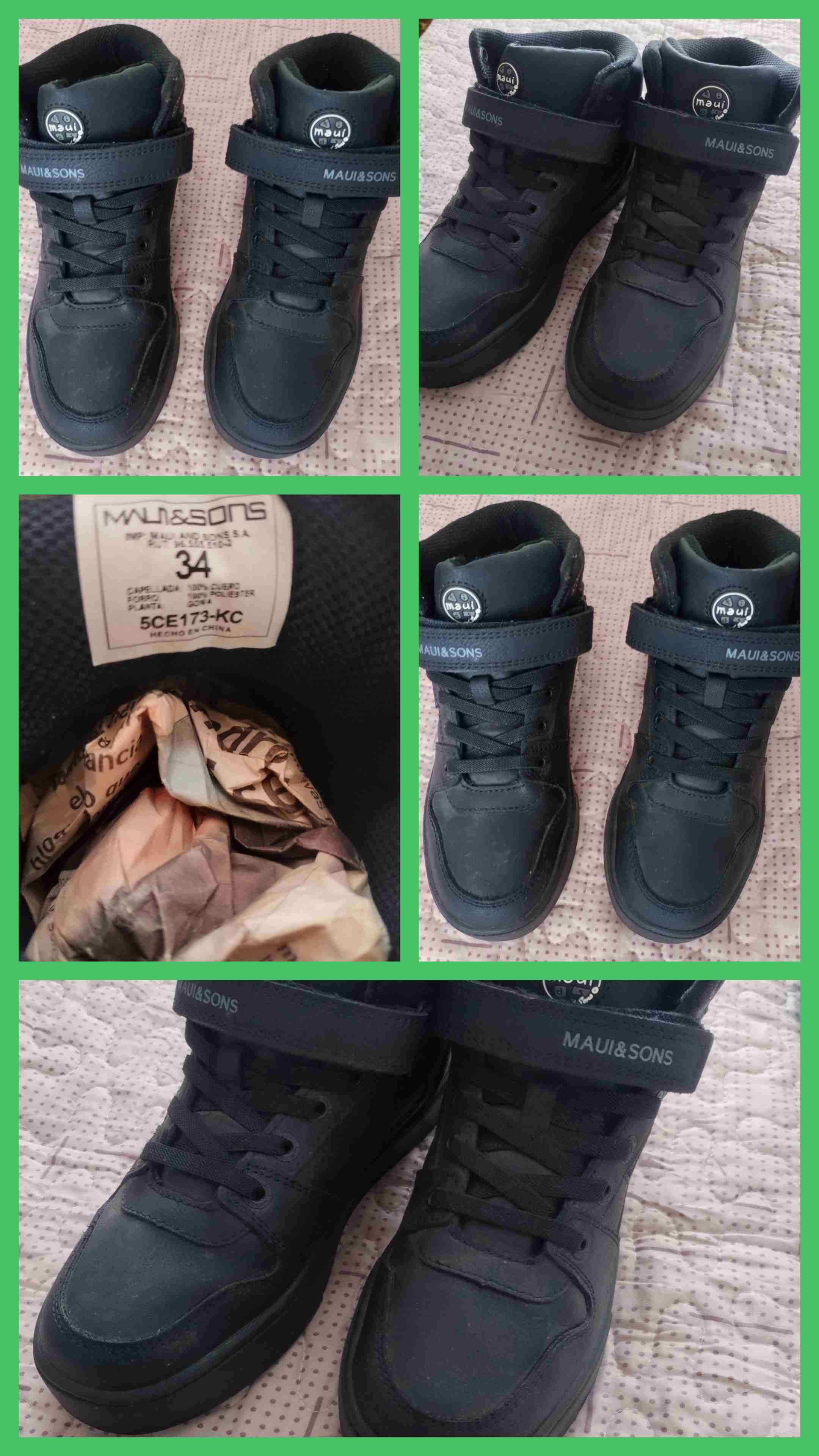 Zapatillas negras para uso diario, talla 34, en buen estado con leves signos de uso. Ideales para looks casuales.
