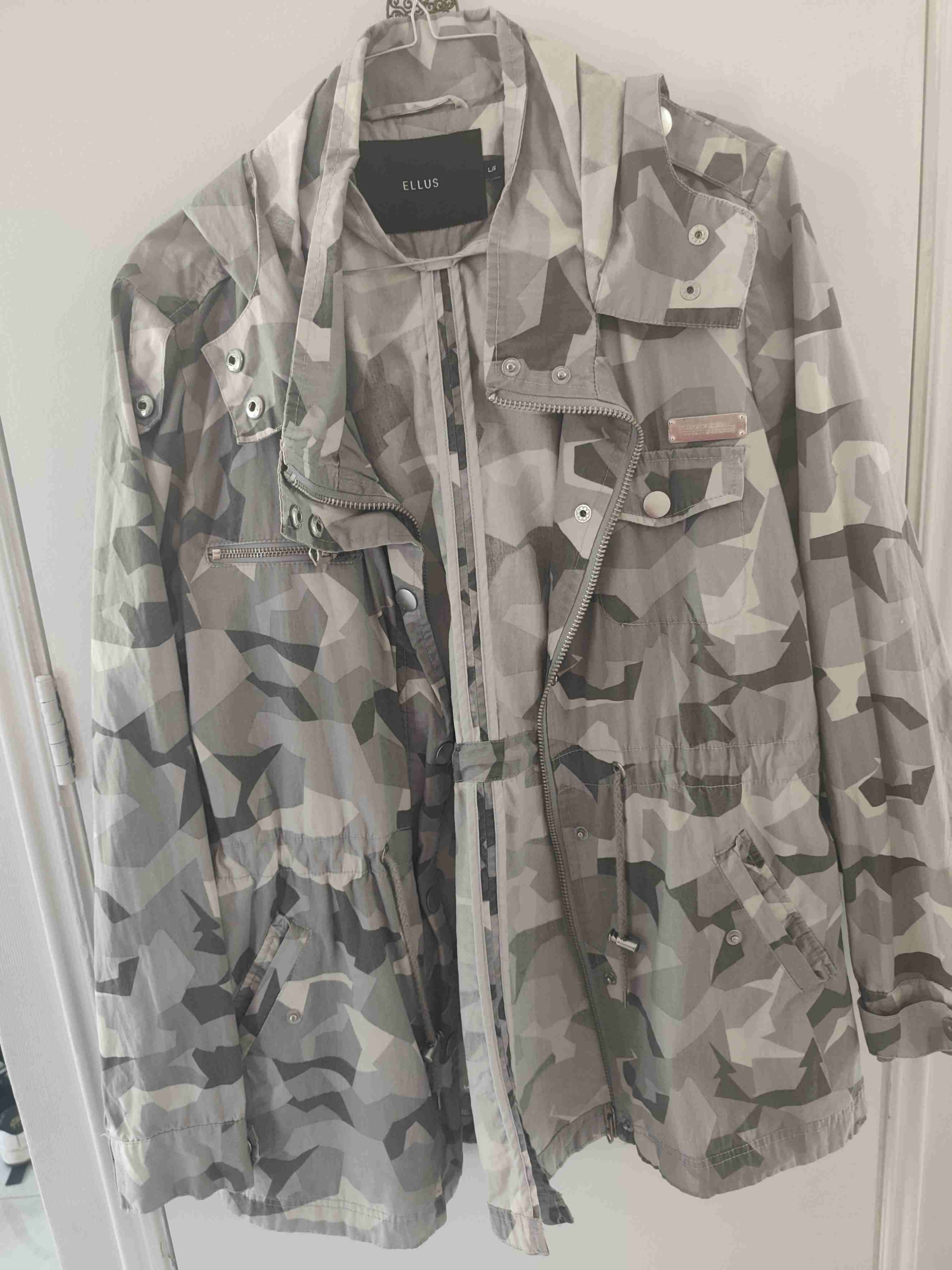 Parka estilo militar con diseño de camuflaje. Ideal para días fríos y uso urbano. En buen estado.