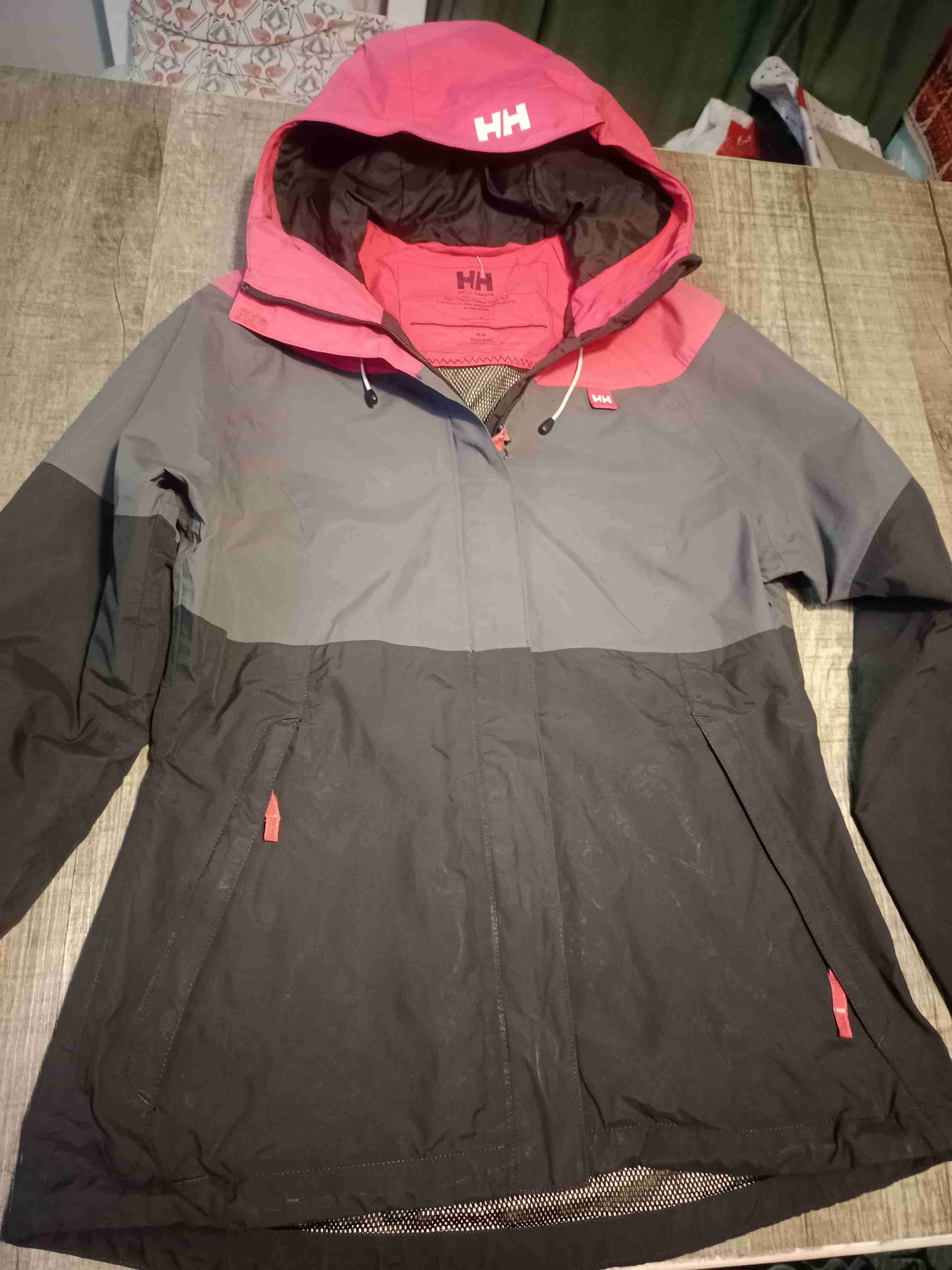 Chaqueta impermeable mujer para outdoor, con capucha y cierre frontal. Ideal para días de lluvia y actividades al aire libre. Condición buena con leves señales de uso.
