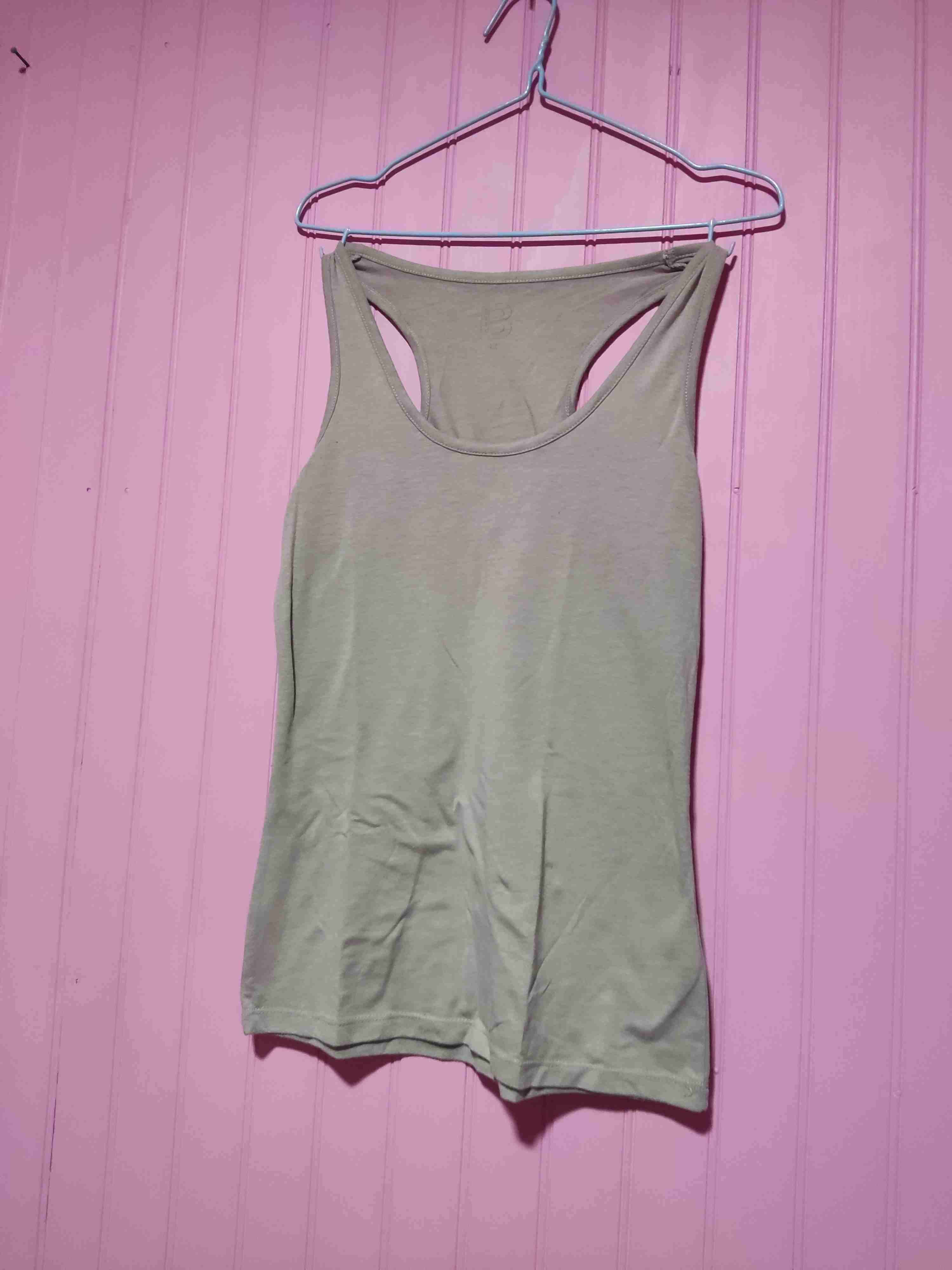 Polera gris sin mangas, ideal para actividades deportivas. En buen estado general, con ligeros signos de uso.