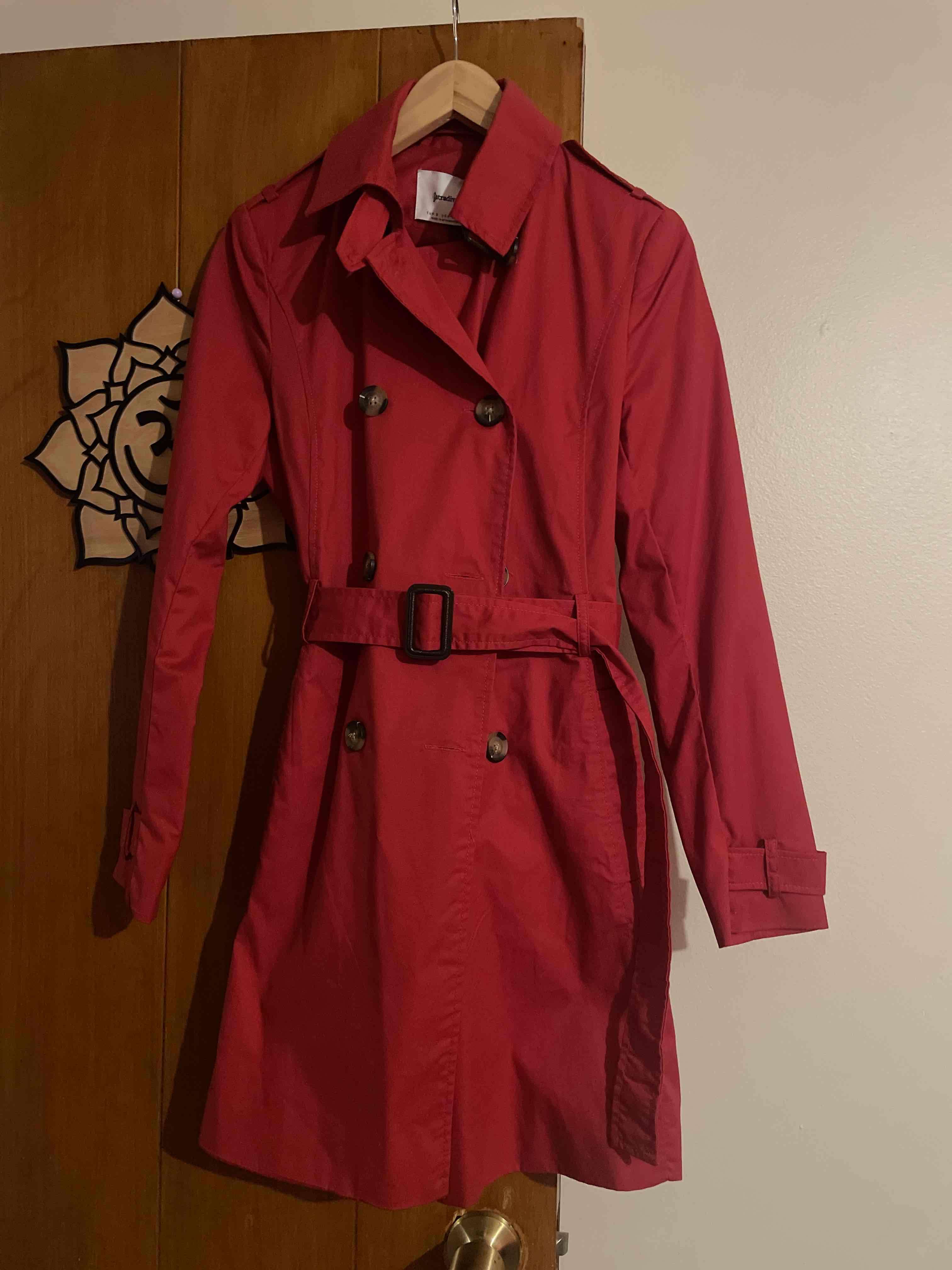 Abrigo trench rojo elegante, ideal para otoño. Nuevo con etiqueta